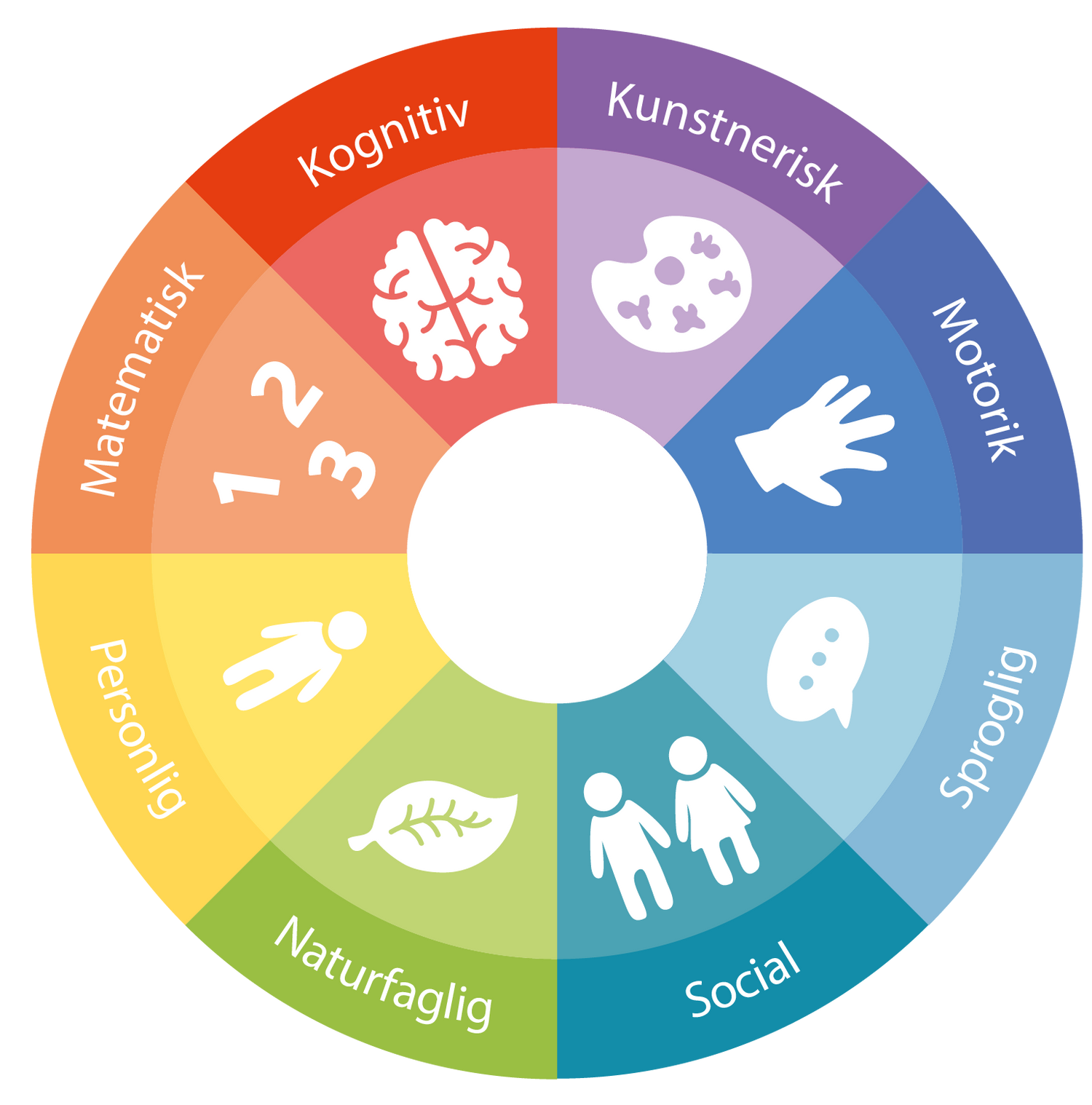 Vores produkter dækker de otte grundlæggende områder for et barns udvikling.