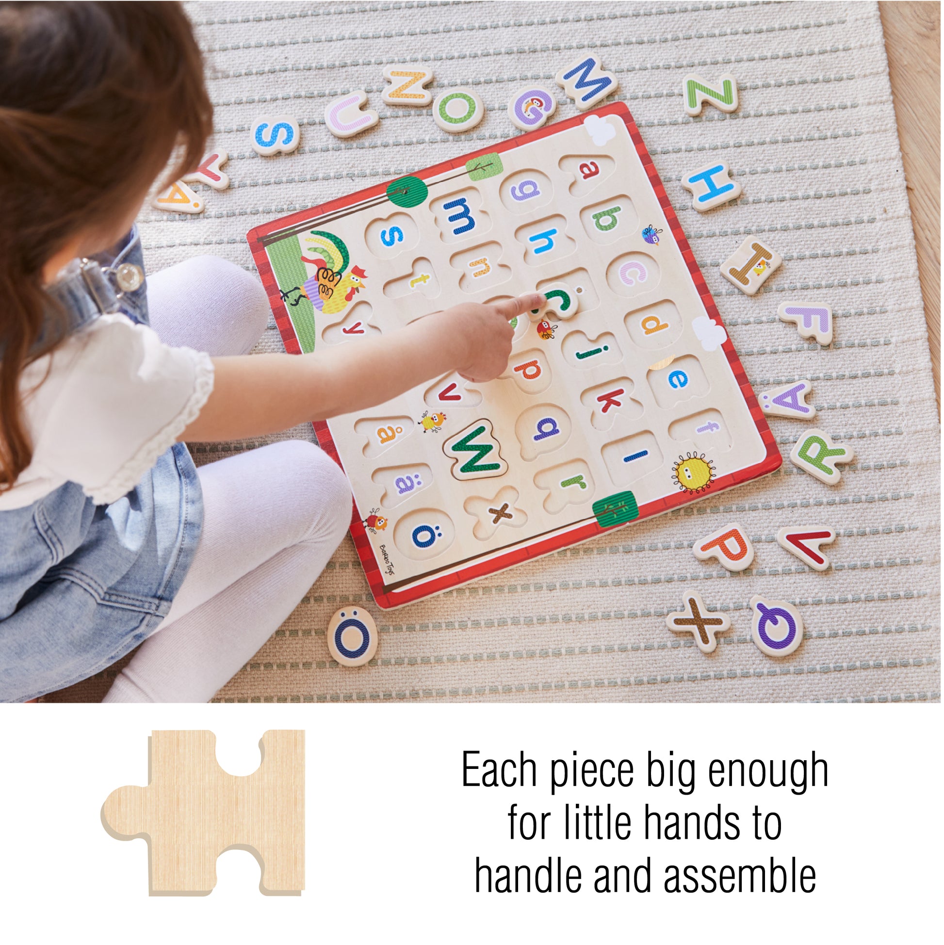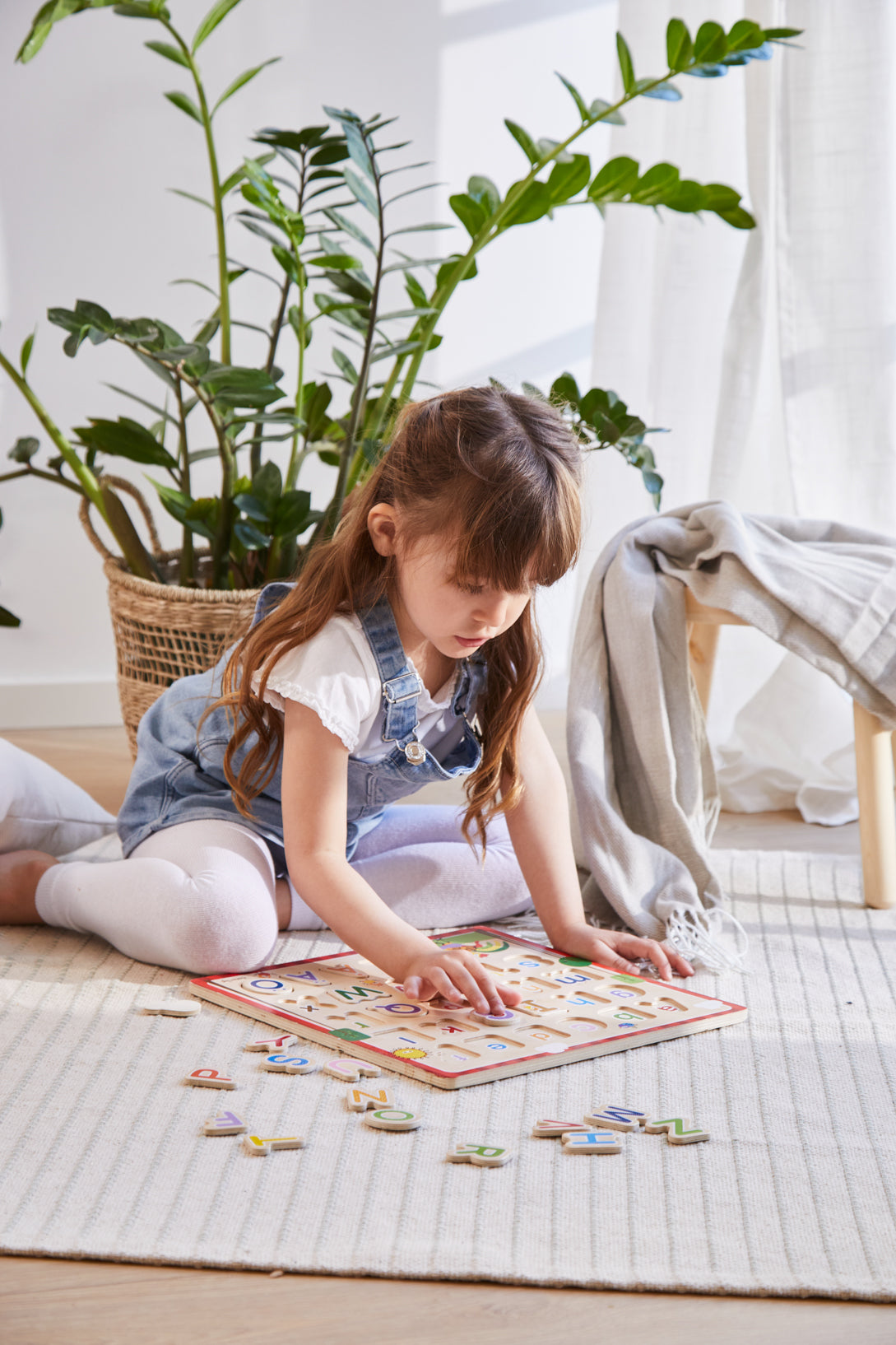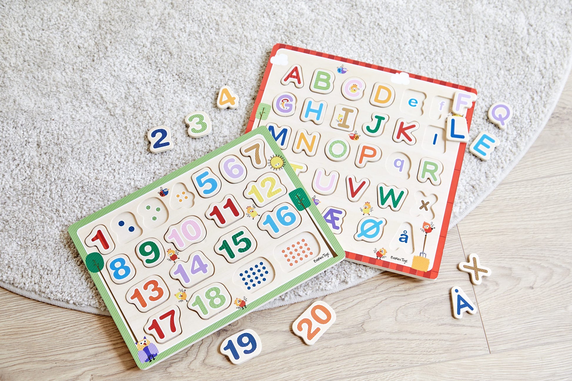 Teach your child the Danish alphabet with this cozy wooden puzzle. Practice the alphabet by putting together the puzzle and strengthen the child's letter learning, sense of shapes, color recognition and hand-eye coordination. The wooden puzzle is a playful and pleasant way to learn the alphabet, as well as getting to know the upper and lower case letters of our alphabet.