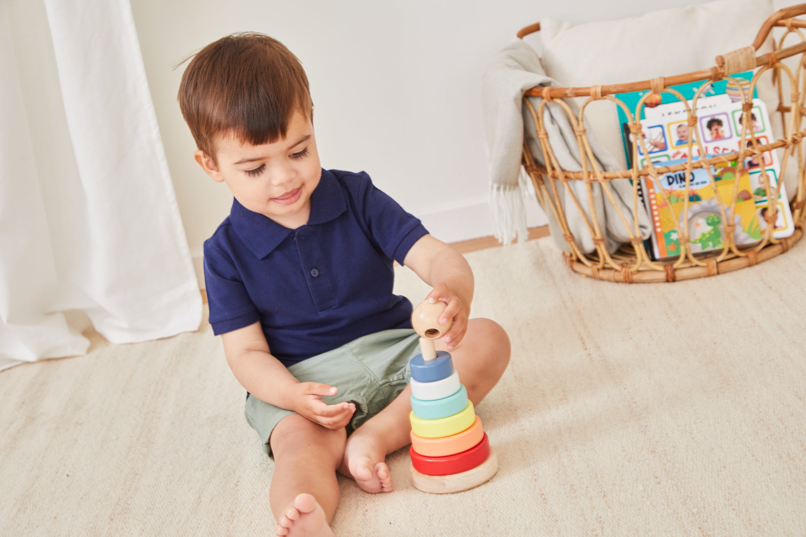 The stacking rings are a great way to help develop babies' problem-solving skills, spatial intelligence and fine motor skills. Because the toy comes in different colors, it also helps in their visual development.