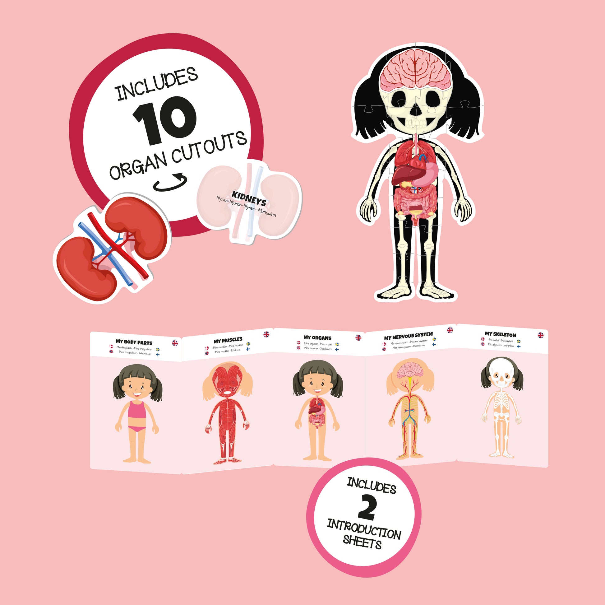 But that’s not all! The set includes 10 realistic organ pieces that children can place on the puzzle, plus an informative leaflet explaining the organs, muscles, bones, and nervous system. This hands-on approach deepens kids’ understanding of how the body works.