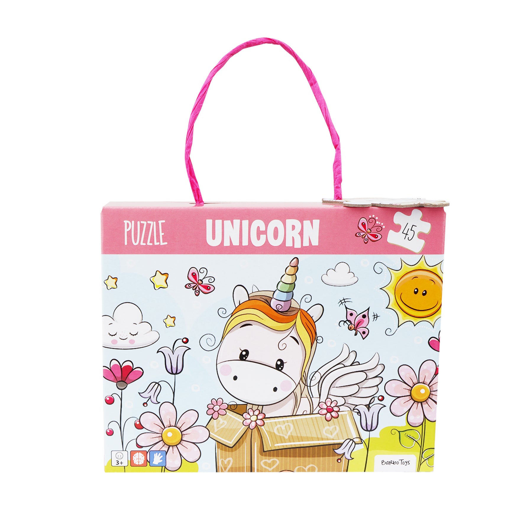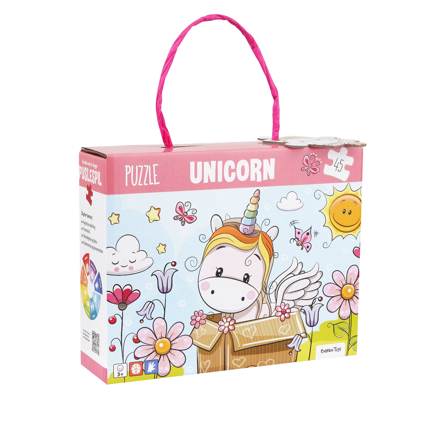This enchanting 45-piece puzzle features adorable unicorns, a lovely princess, and a dreamy fairytale landscape. Perfectly sized for little hands, it helps children develop concentration, fine motor skills, and problem-solving abilities -all while having fun.