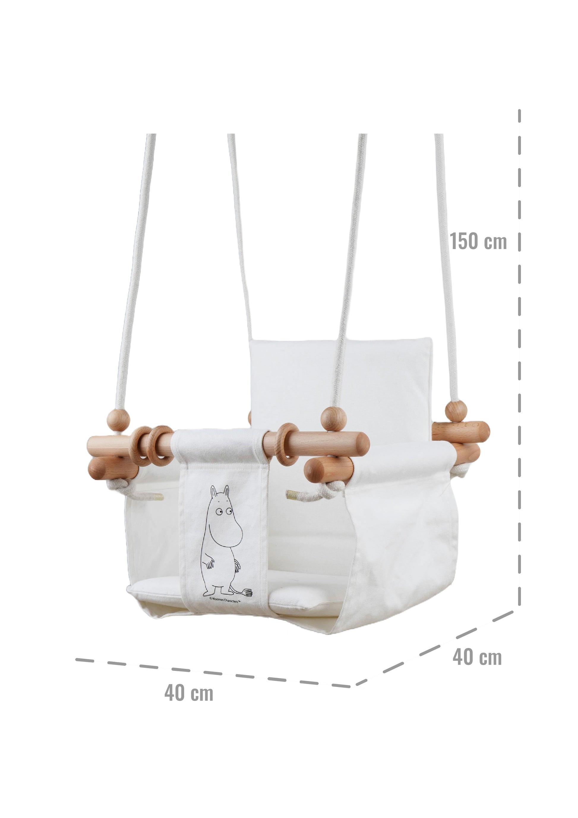 The Moomin Baby Swing – Perfect for indoor and outdoor use, this swing features a cozy seat adorned with the beloved Moomin character, adding a touch of whimsy and comfort. The neutral beige color and natural wood elements blend seamlessly with any home decor, making it a stylish addition to your child's nursery or playroom.