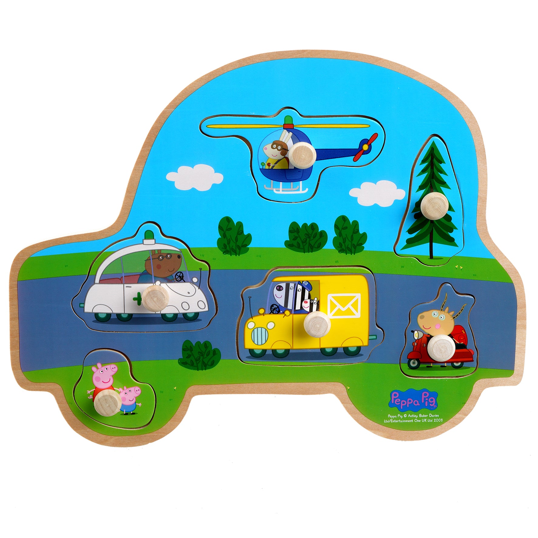 Peg Puzzle with 6 wooden puzzle pieces with Peppa Pig illustrations