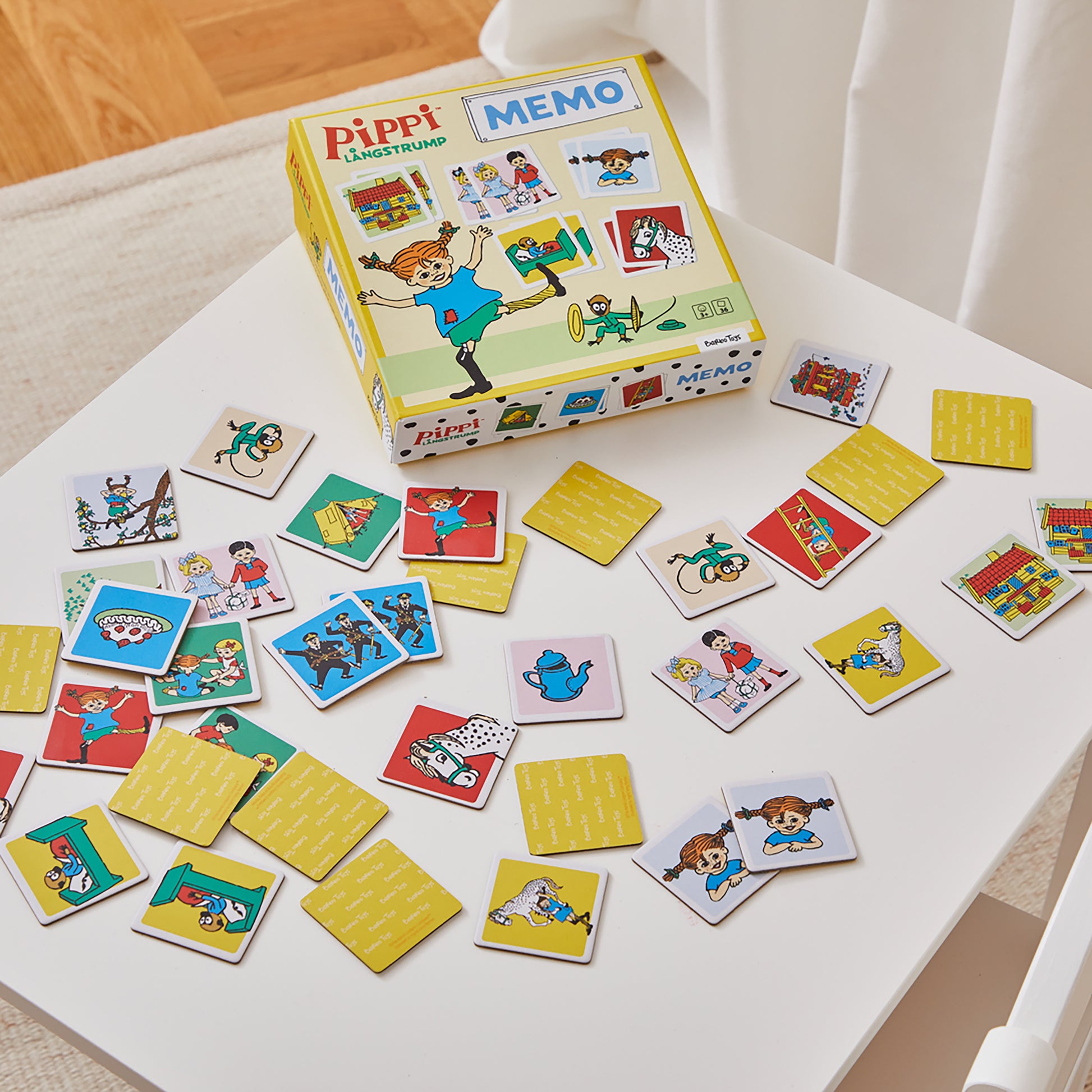 Playing memory games is both fun and very educational for your children. In this memory game the bricks/pieces are decorated with the fun characters from the Pippi Longstocking universe.