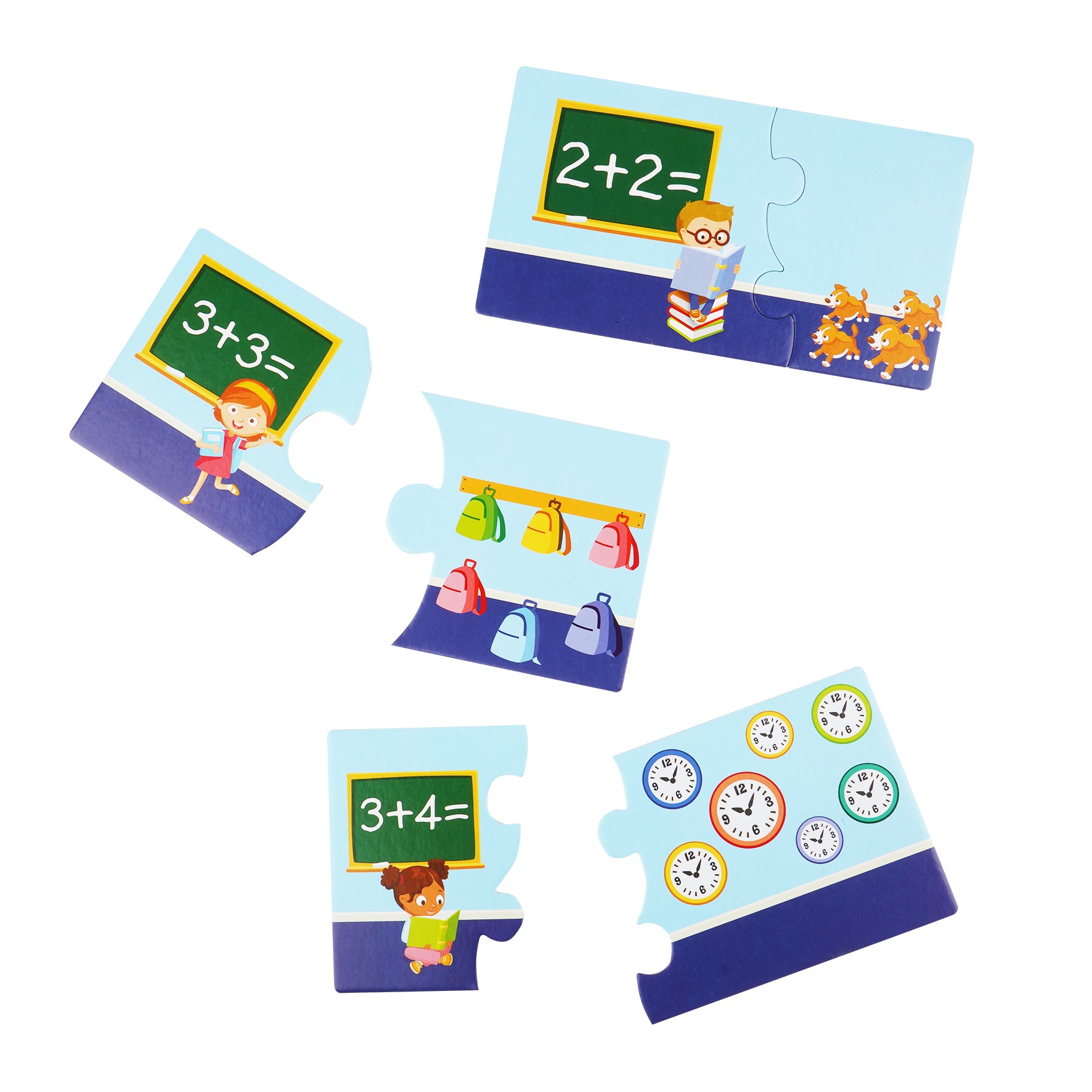 This cute puzzle box contains 10 mini puzzles and can be your child’s first step on the way to learn some simple math. Teach your children simple calculations. There are motifs and numbers on both the front and back of the puzzle pieces that should help your child to learn about simple calculations.