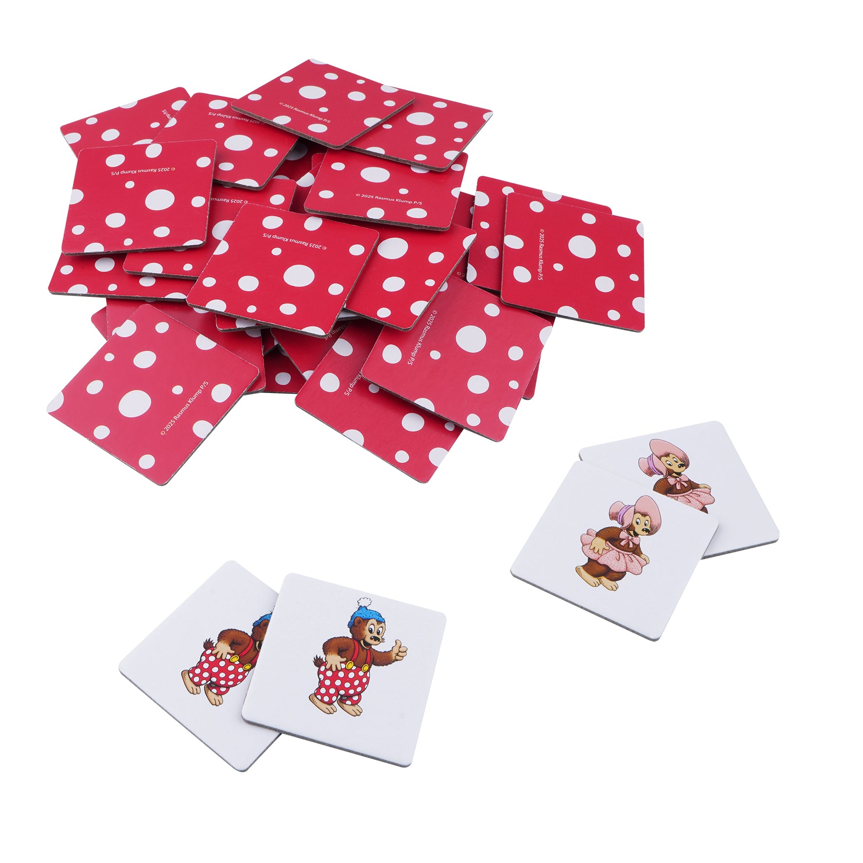 Charming Rasmus Klump memory game - will delight young players as they flip two pieces to find a match. If they match, the player keeps them, and the one with the most pairs wins.