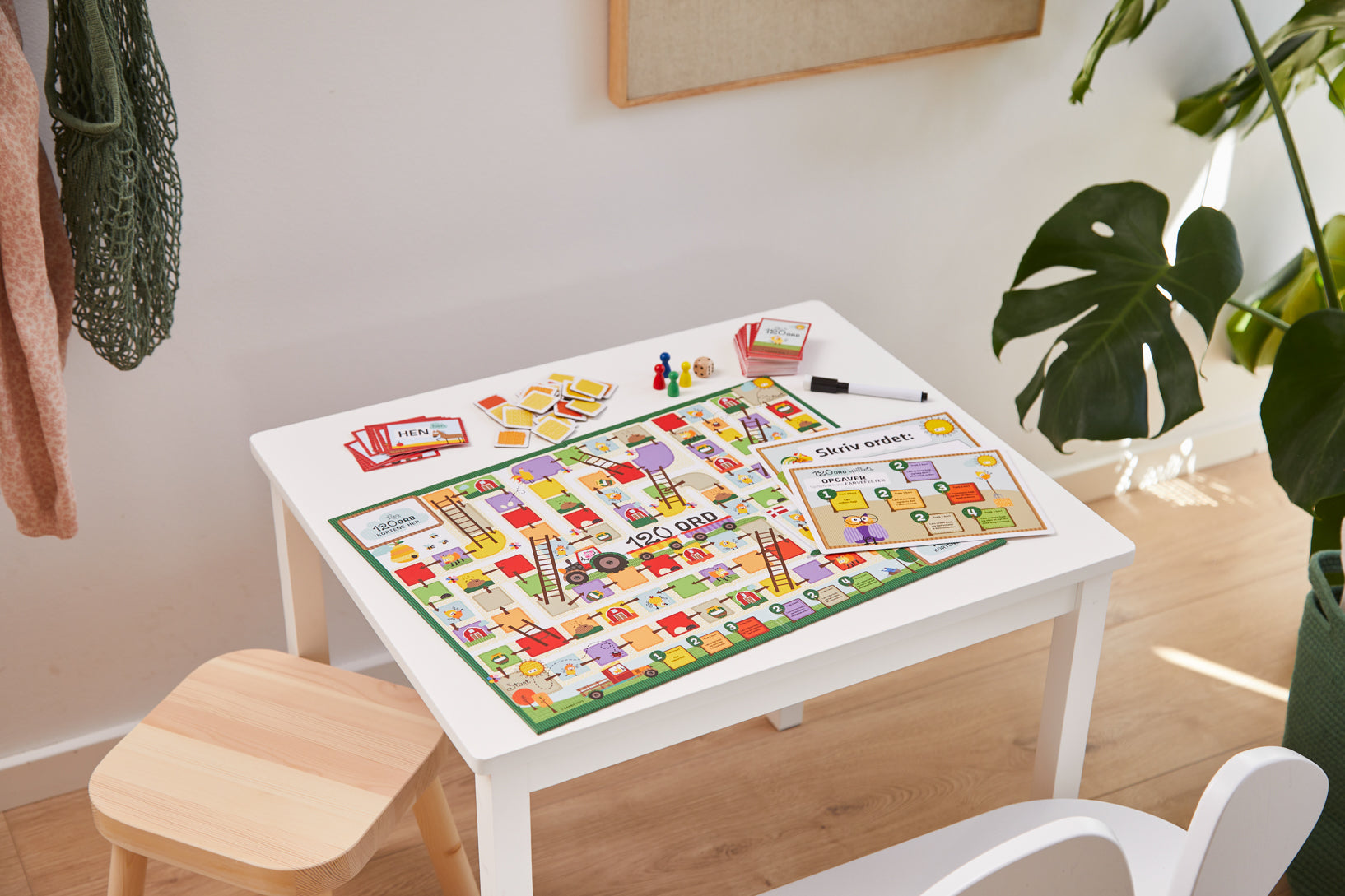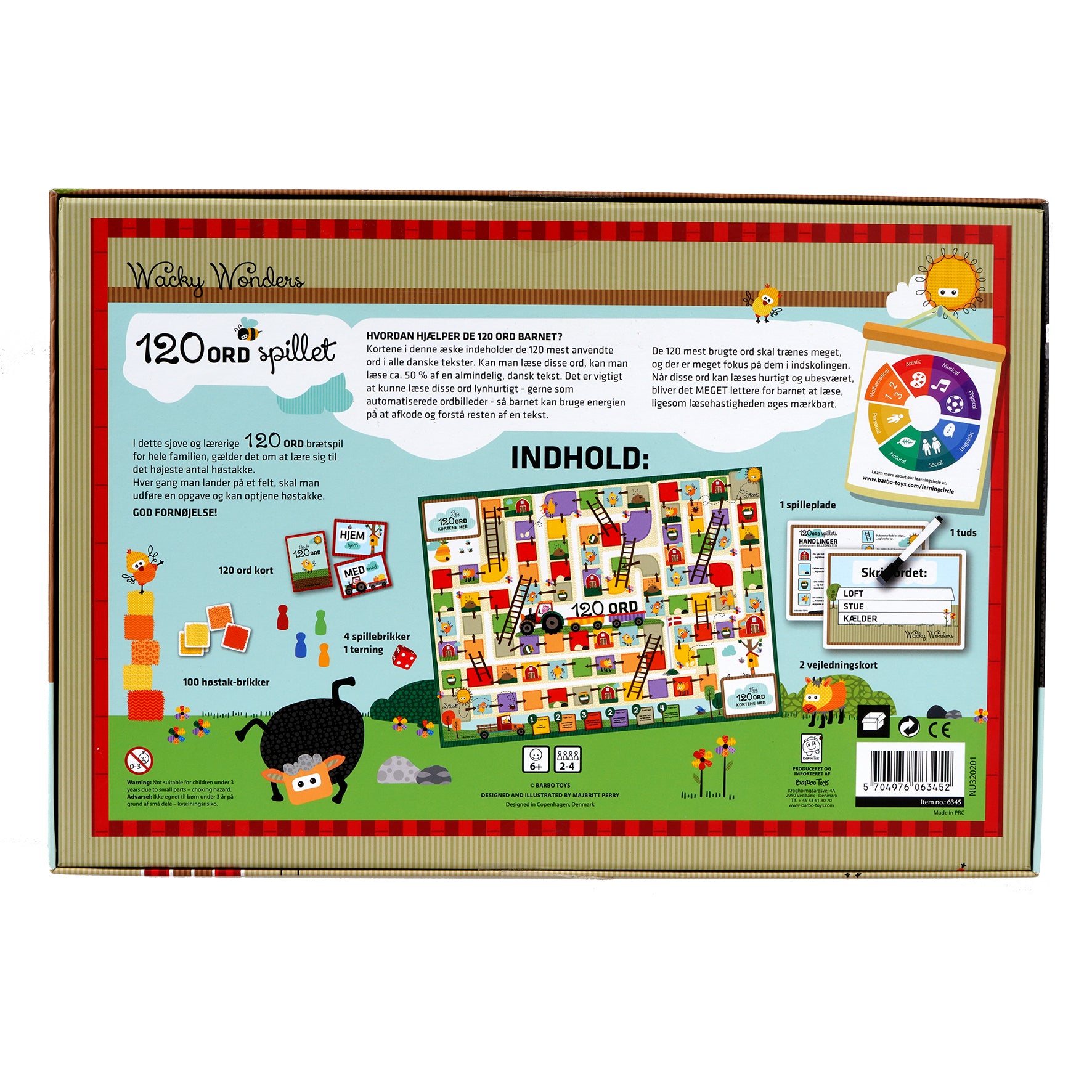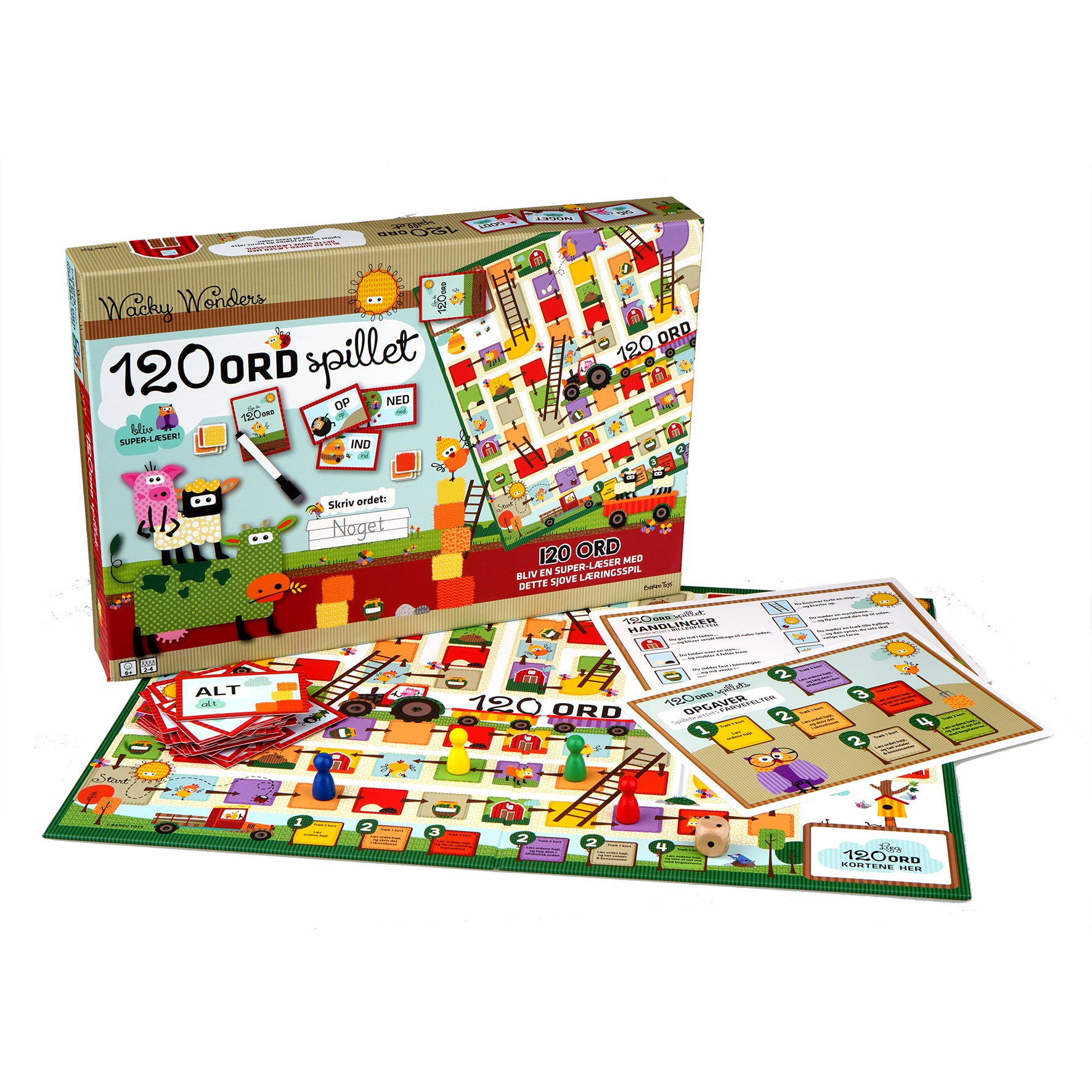 In this entertaining and educational board game for the whole family, it's about getting the fun animals from the Wacky Wonders universe around the different paths to learn the 120 most used words in the Danish language.