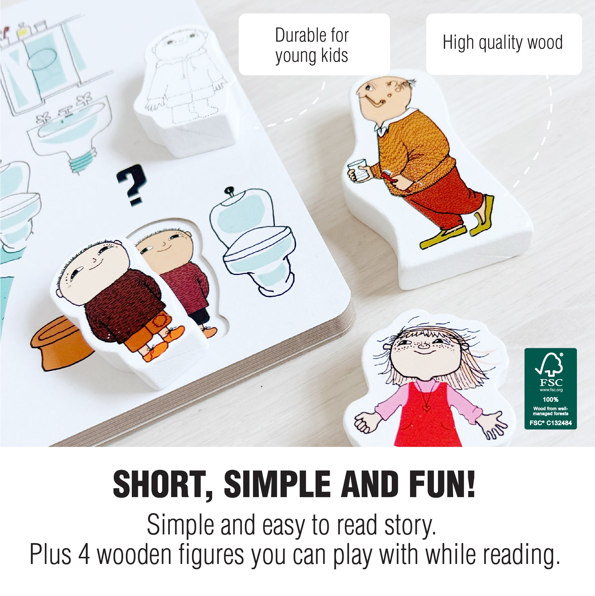 Bogen er fyldt med farverige illustrationer, sjove fakta og små detaljer, der inspirerer børn til at observere, stille spørgsmål og deltage i samtaler. De interaktive elementer styrker kognitive færdigheder, mens den børnevenlige størrelse på både bogen og figurerne gør dem lette at håndtere for små hænder.