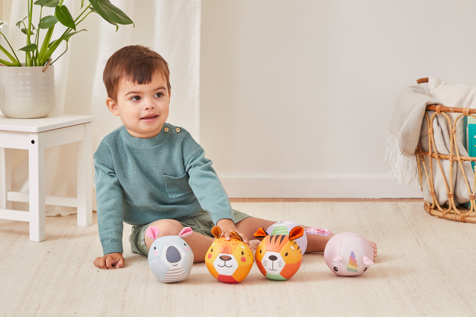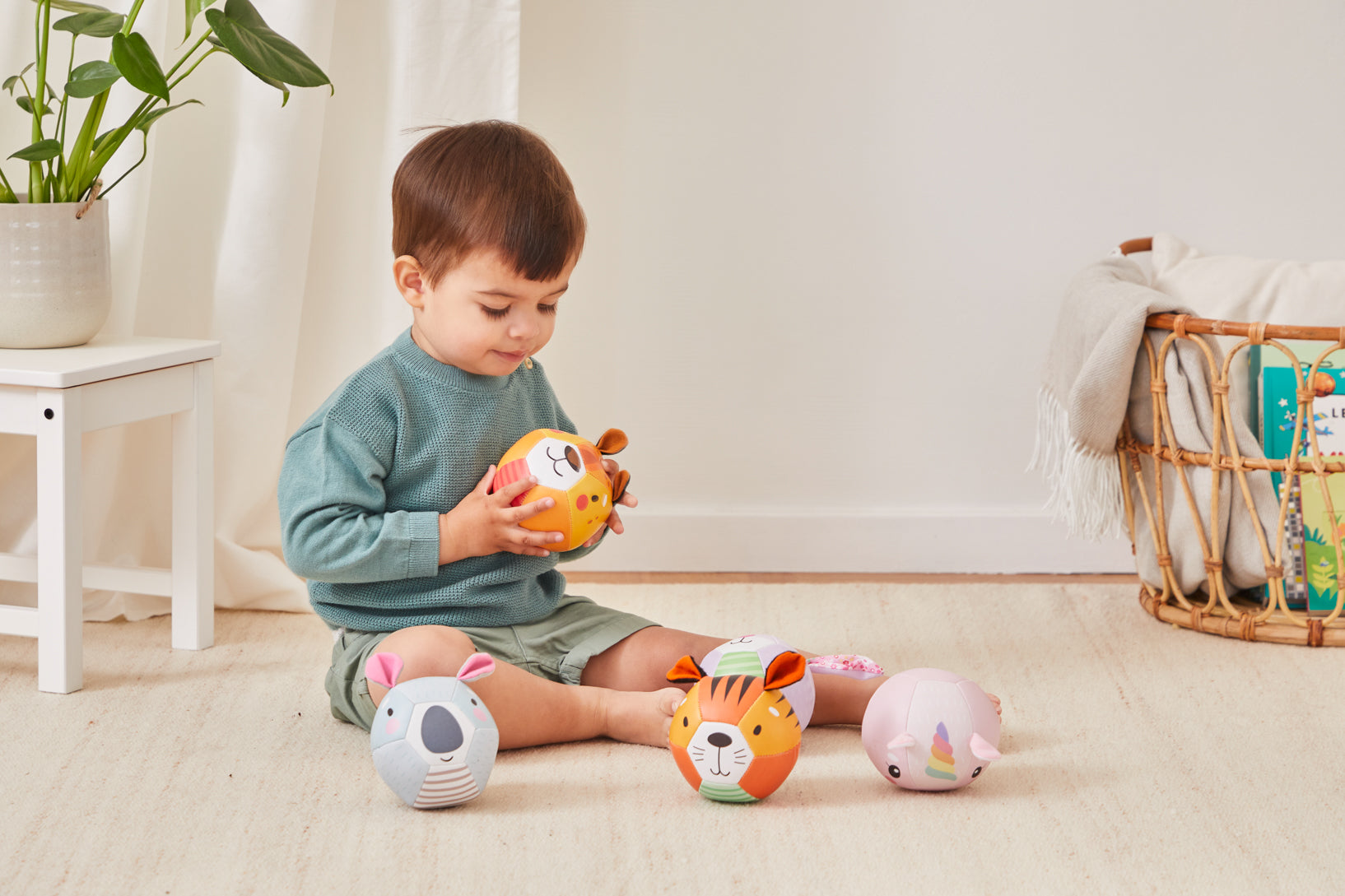 Koala softball med krøllede lyde til de små børn, der elsker at røre ved og føle legetøj. Den bløde bold styrker barnets koordination og motorik. For børn fra 6 måneder og opefter.