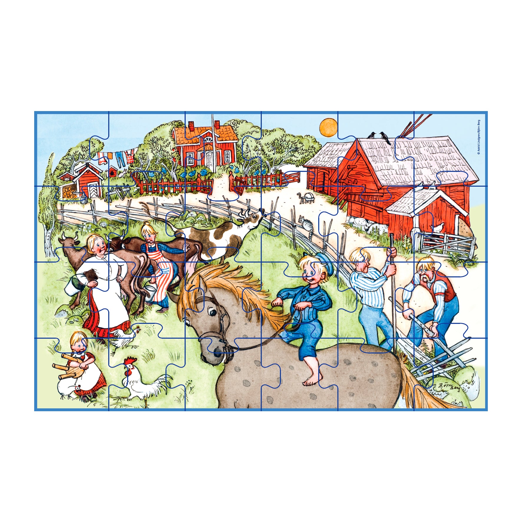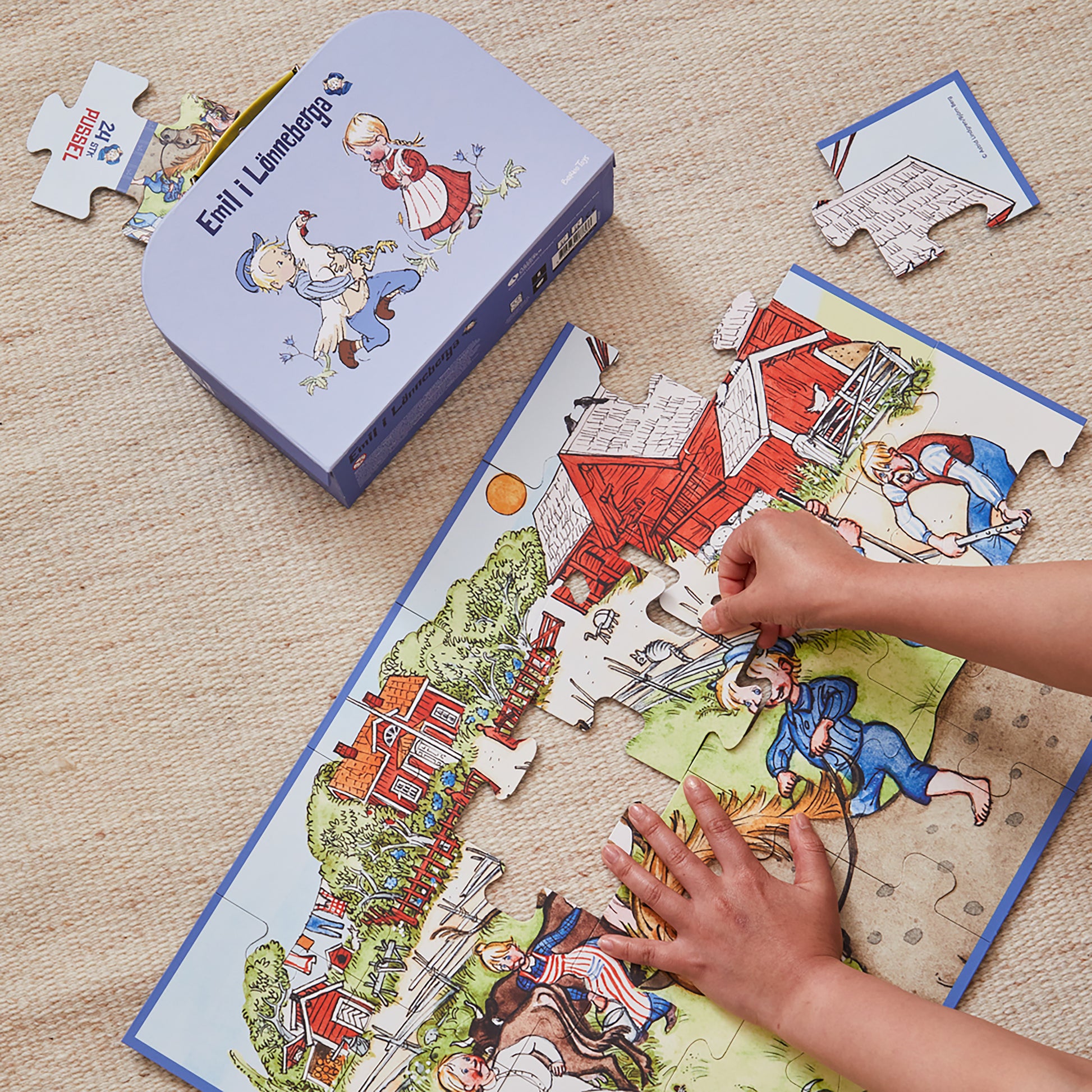 ag en tur ned ad mindernes vej til den charmerende verden af "Emil fra Lønneberg" med dette dejlige kuffertpuslespilssæt! Gemt inde i denne robuste og smukt designede kuffert er et puslespil, der bringer Emils og hans søsters legende eskapader til live, lige midt i hjertet af Lønneberg. Dette puslespil er ikke bare en sjov aktivitet, men også et stykke nostalgi for dem, der voksede op med Astrid Lindgrens elskede historier.