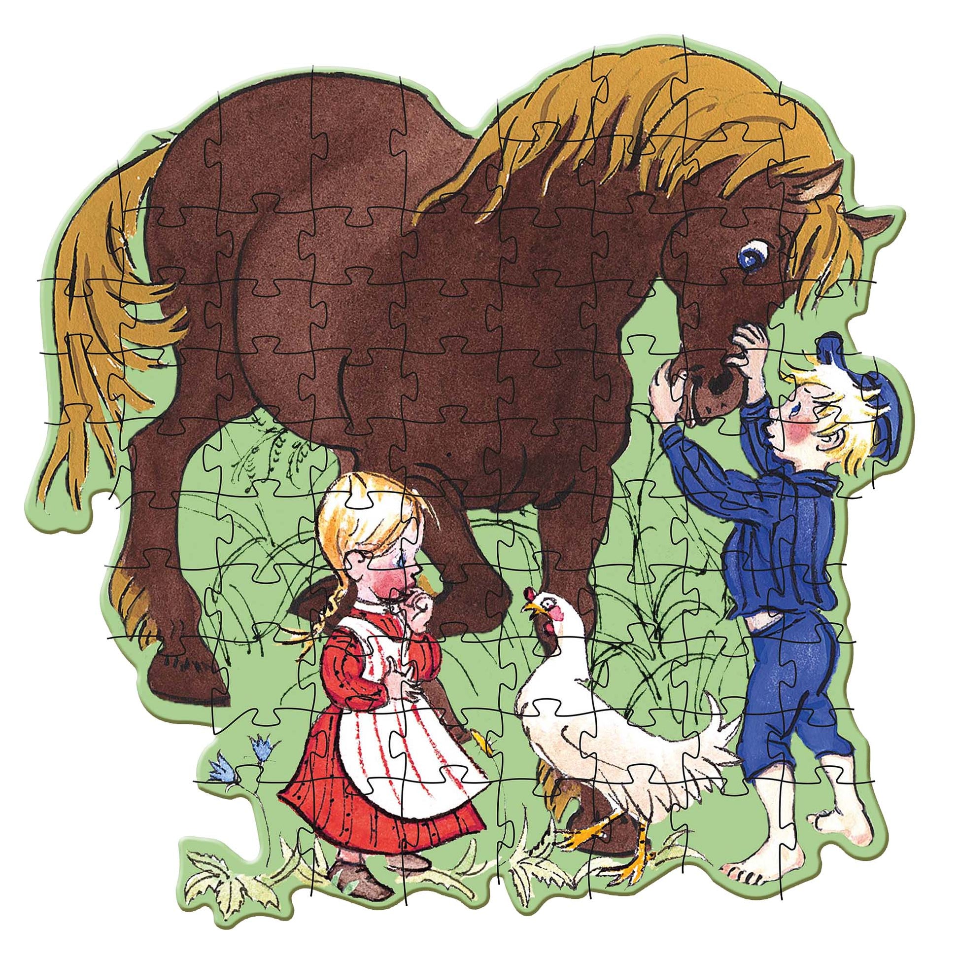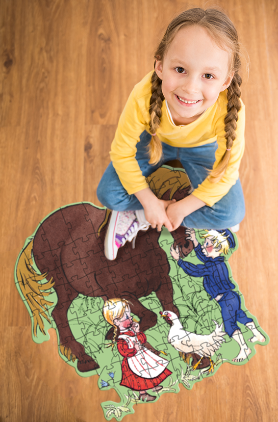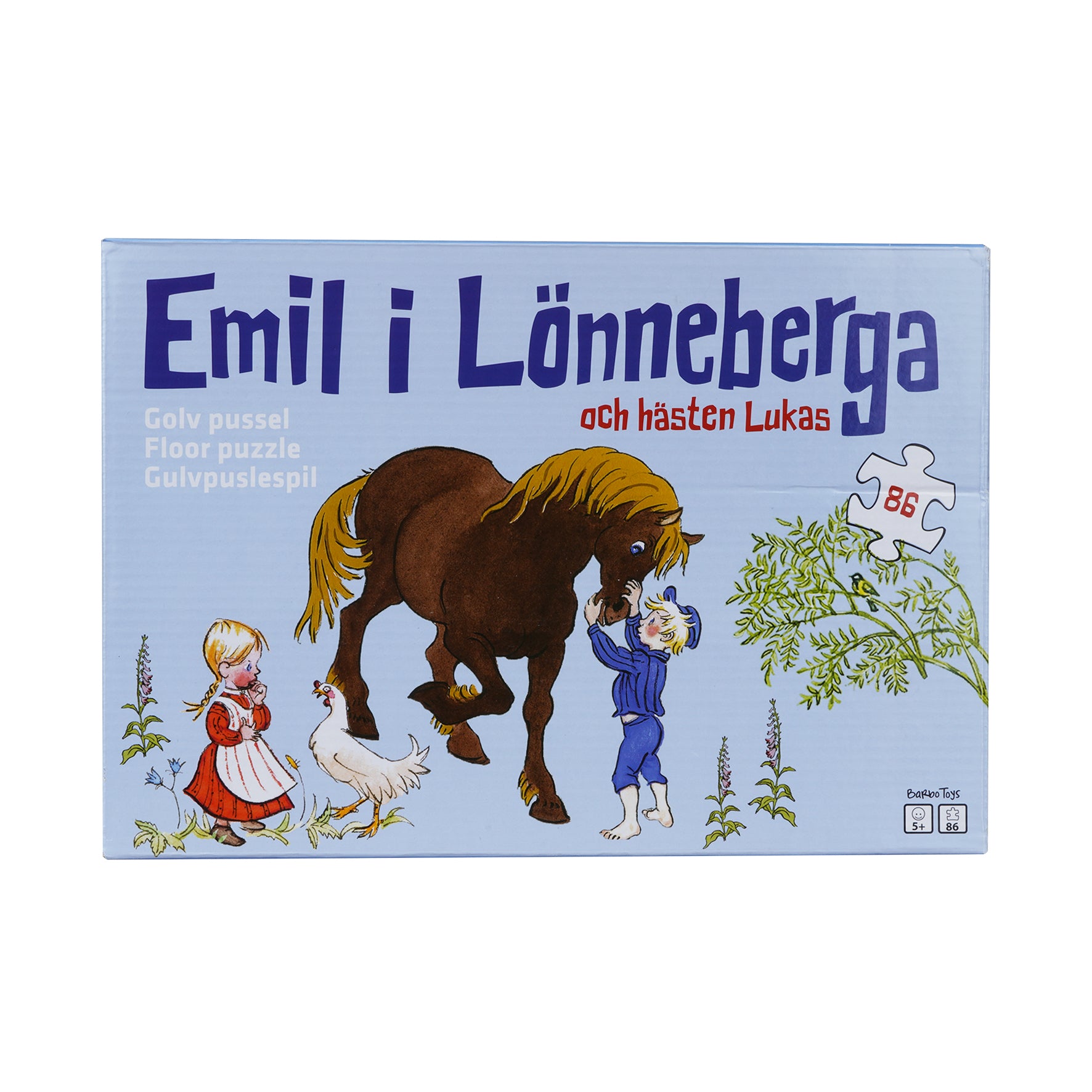 Er du eller dit barn stor Astrid Lindgren-fan eller måske elsker I bare den frække Emil fra Lønneberg så er dette fine puslespil helt sikkert et du bare må eje. Når puslespillet er samlet, ses lillesøster Ida, den frække Emil, en høne og hesten Lukas illustreret. Et stort, flot og solidtt gulvpuslespil i god kvalitet med 86 brikker.