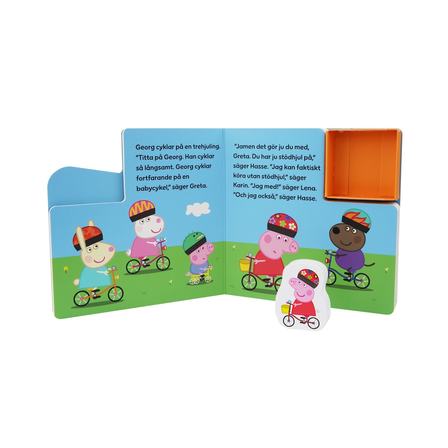 Bogen leveres med en fin træfigur af Gurli Gris på sin cykel, som passer perfekt i bogens indbyggede opbevaringsrum og giver børn mulighed for at bringe historien til live gennem leg. De mindste kan genskabe scener fra bogen eller finde på deres egne fantasifulde Gurli Gris-eventyr.