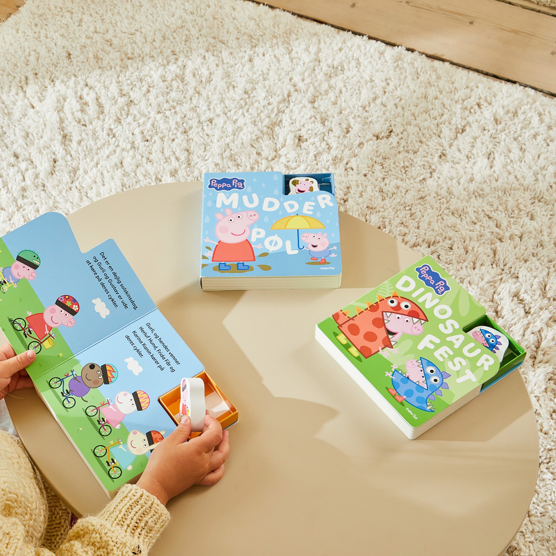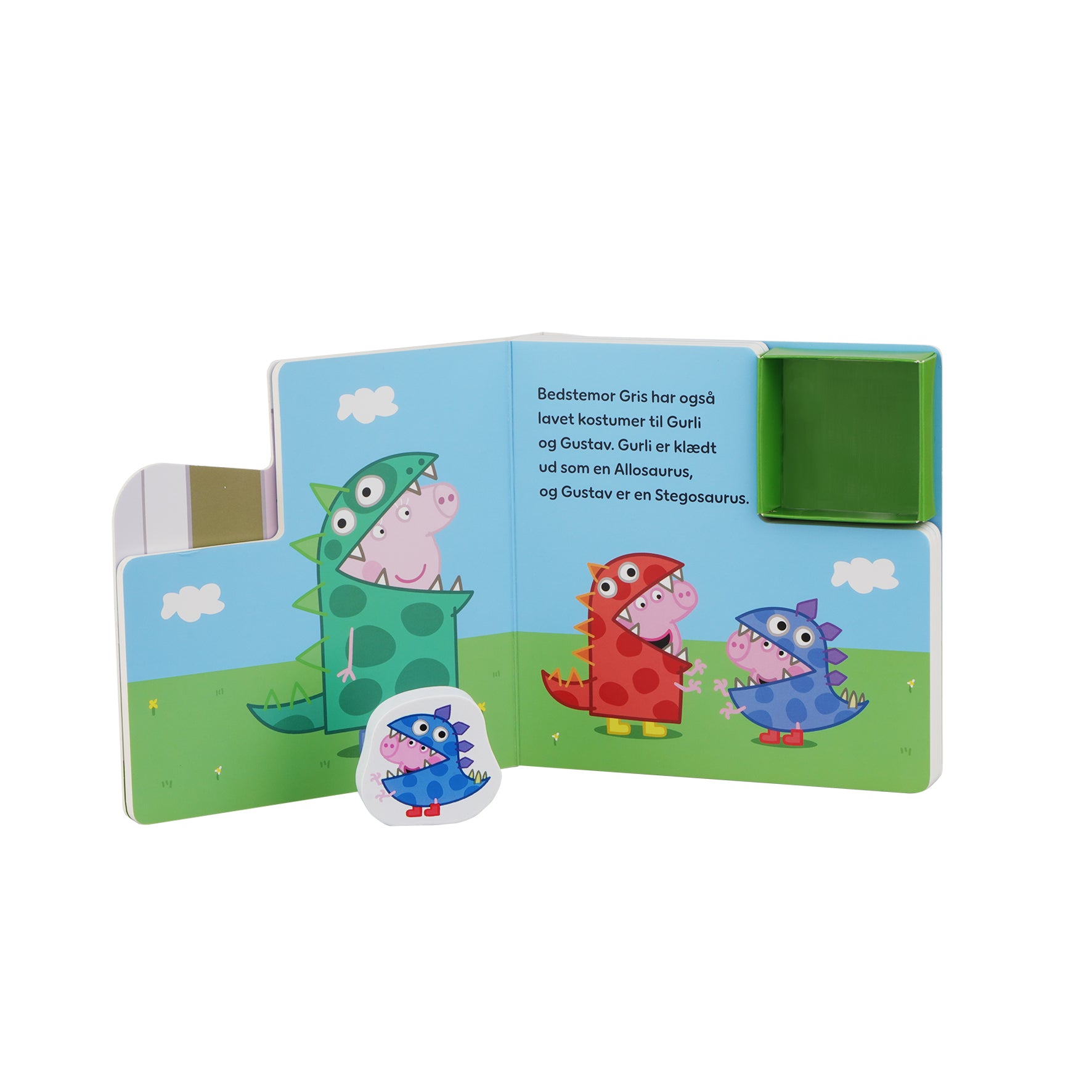 Tag med Peppa Pig og George til en brølende sjov Dino-fest! Denne charmerende papbog tager børn med på en fantasifuld rejse, hvor søskendeparret klæder sig ud som dinosaurer og nyder deres forhistoriske fest. Sættet indeholder tre detaljerede træfigurer – Peppa, George og George i sit søde dinosaurkostume – der giver uendelige muligheder for leg og kreativ historiefortælling.