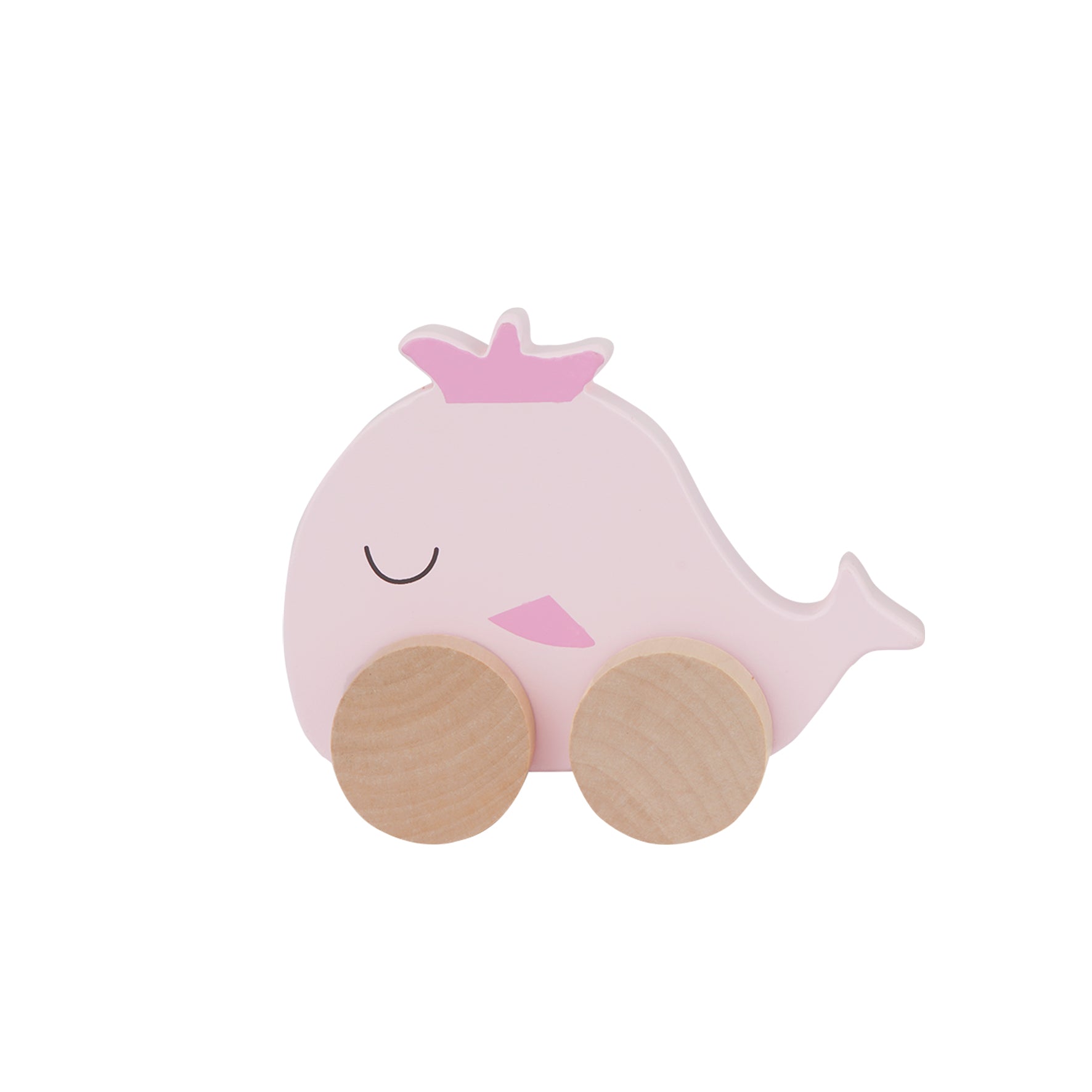 Træhval på Hjul er et smukt håndværket legetøj, designet til at vække fantasien og opmuntre til bevægelse. Fremstillet af træ af høj kvalitet med en glat, naturlig finish har denne søde rullende hval blide pastelfarver og et minimalistisk design, der gør den både legende og stilfuld. De solide træhjul sikrer, at den glider let hen over overflader, samtidig med at den styrker finmotorik, koordination og kreativitet.