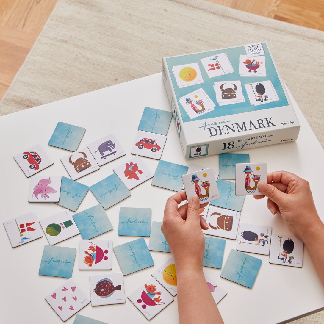 At spille huskespil er både sjovt og meget lærerigt for dine børn. I dette huskespil er klodserne/brikkerne dekoreret med illustrationer fra Ib Antoni. Med Ib Antonis kunst som motiv får du en visuel rejse gennem dansk kultur og kreativitet.