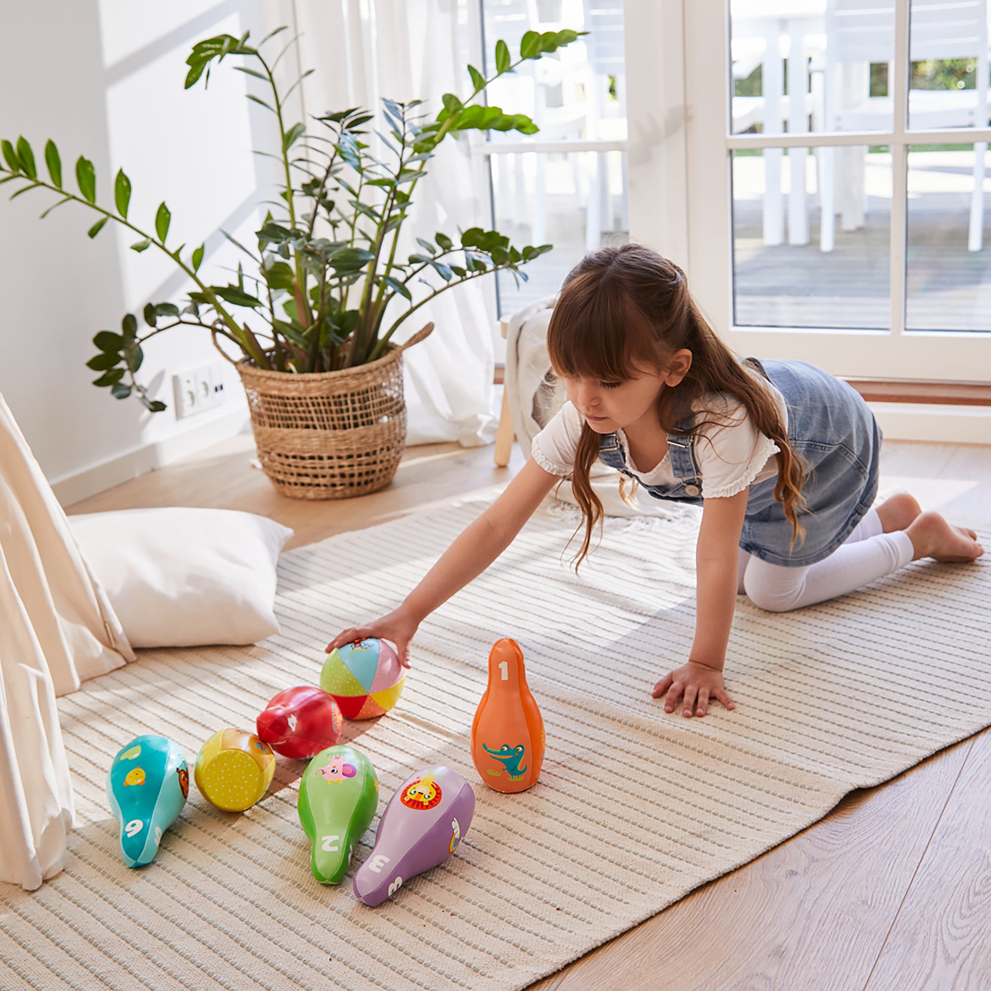 Dette farverige og bløde bowlingsæt er sjovt at røre ved og lege med, selv for de allermindste børn. Sættet indeholder bløde kugler og kegler, hvilket gør det perfekt til indendørs leg.