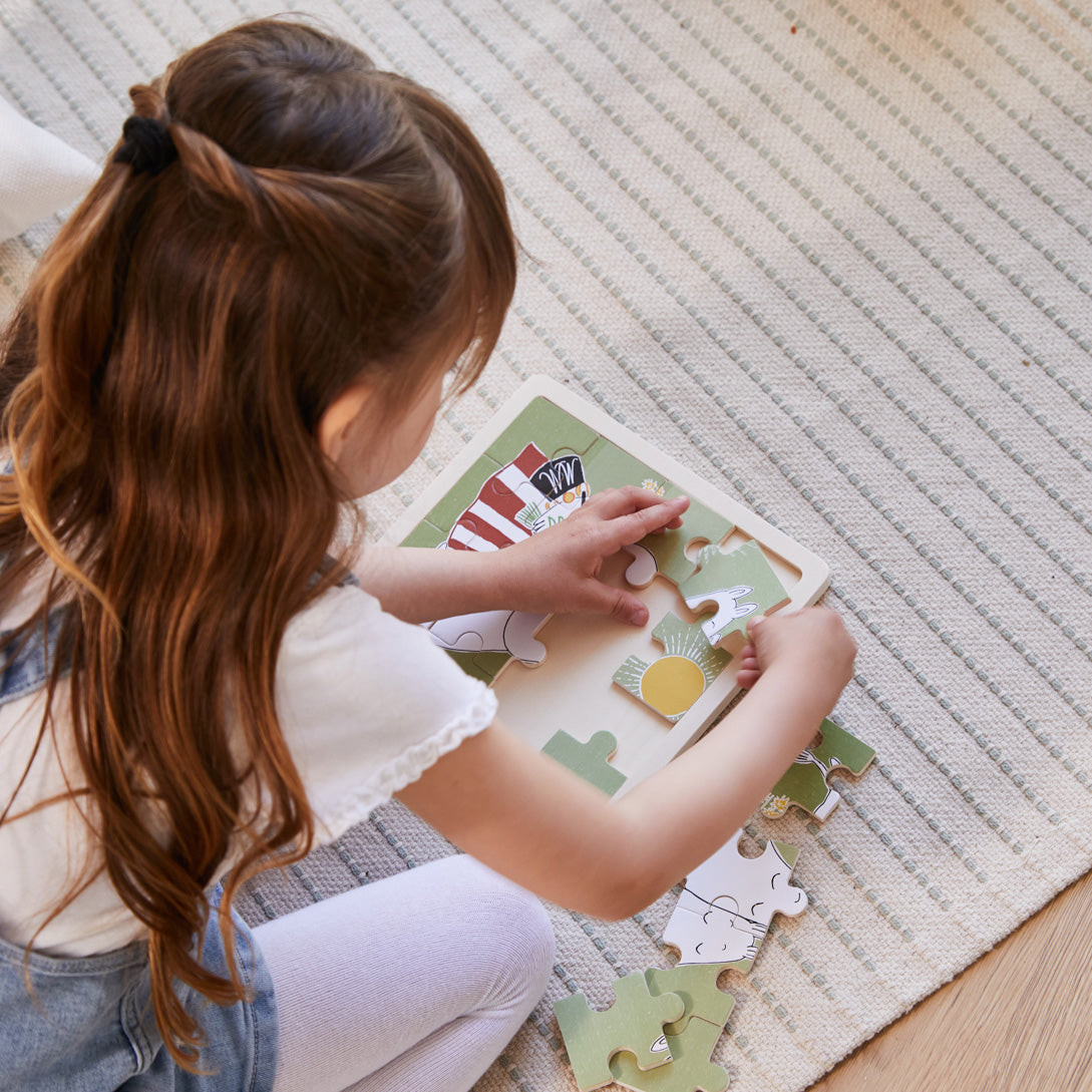 Puslespillet vil bringe mange timers leg og udvikling for de mindste. Puslespil udvikler dit barns visuelle opfattelse og finmotorik. Et puslespil er rigtig god træning og udvikling, du kan give dit barn.