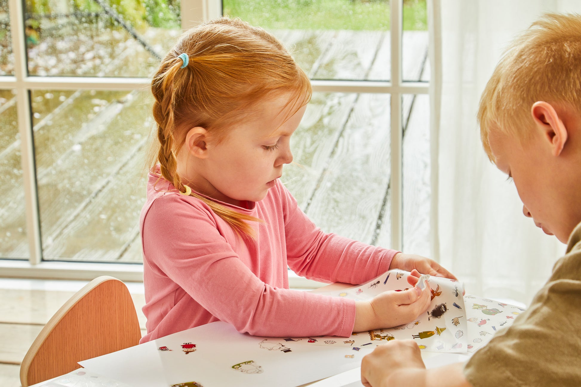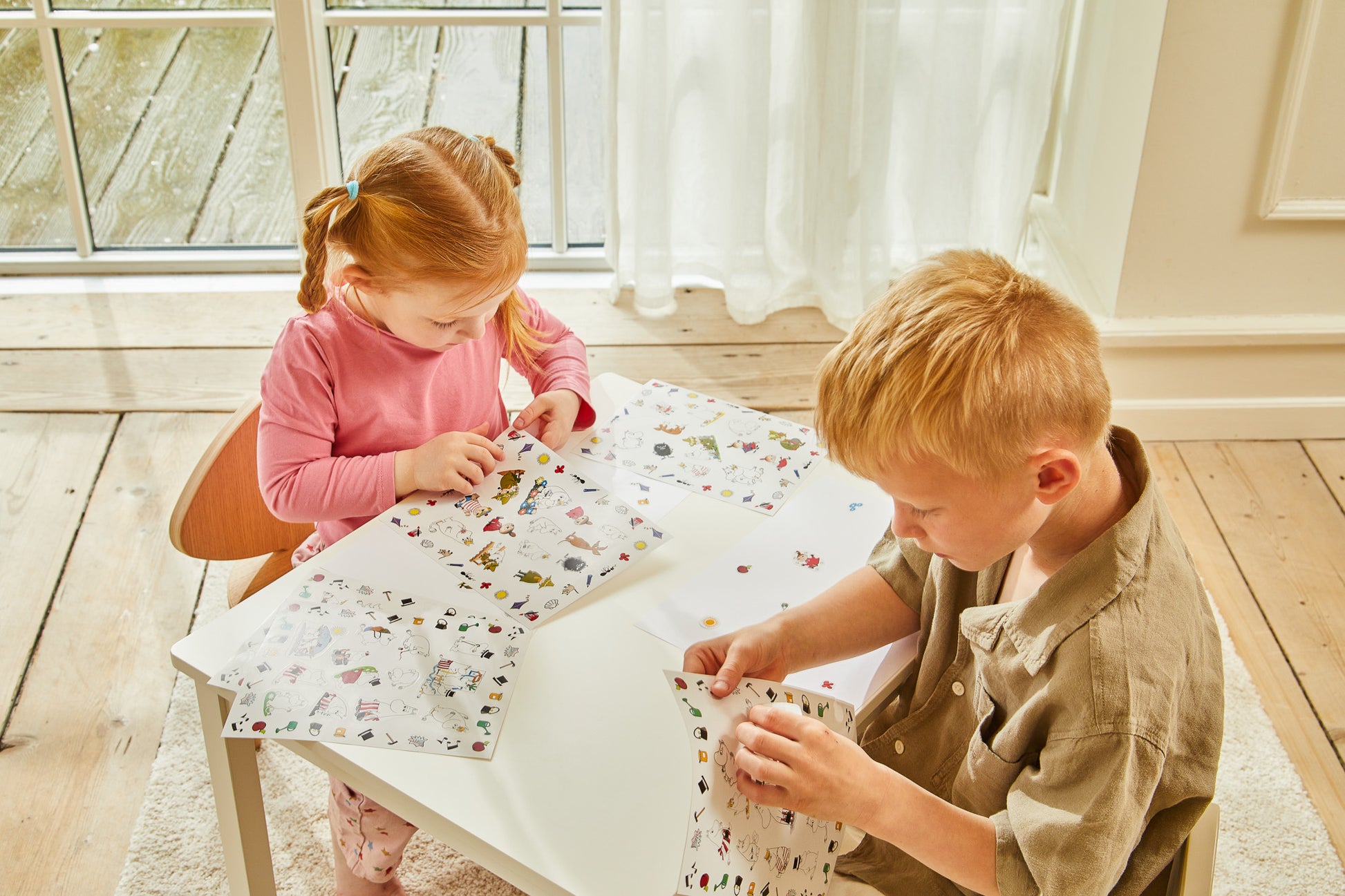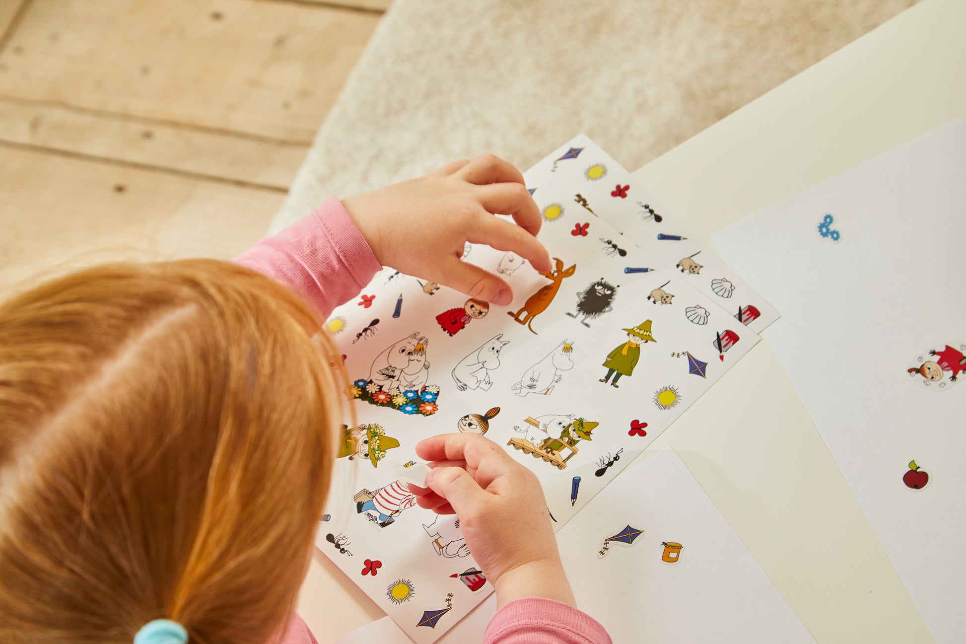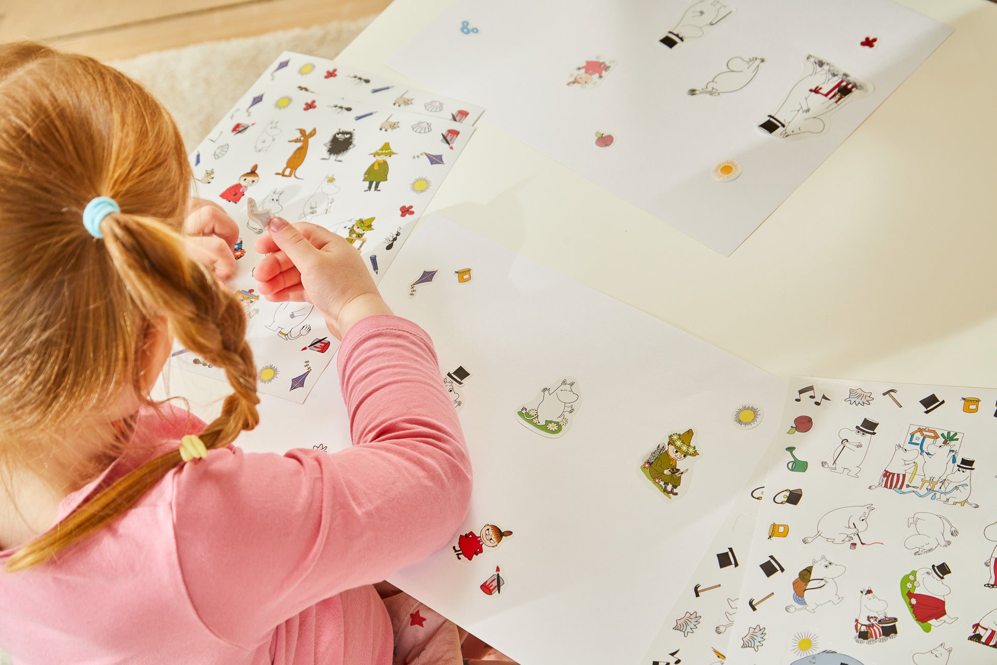 MUMI - KLISTERMÆRKER - Kun fantasien sætter grænser for hvad dit barn kan bruge disse søde klistermærker til. Klistermærkerne er designet søde motiver fra Mumitroldenes univers, hvilket lægger op til timevis sjov leg. Brug klistermærkerne til at lave dine egne eventyr ved at sammensætte dem på papir, hæfter, bøger, postkort eller kombinere dem med deres egne personlige tegninger m.m. Klistermærkerne har mange fine detaljer som giver barnet rig mulighed for at udfolde sin kreative evne og lave sjove billeder. Brug af klistermærkerne er desuden en hjælp til at udvikle finmotorikken i børnenes små hænder.