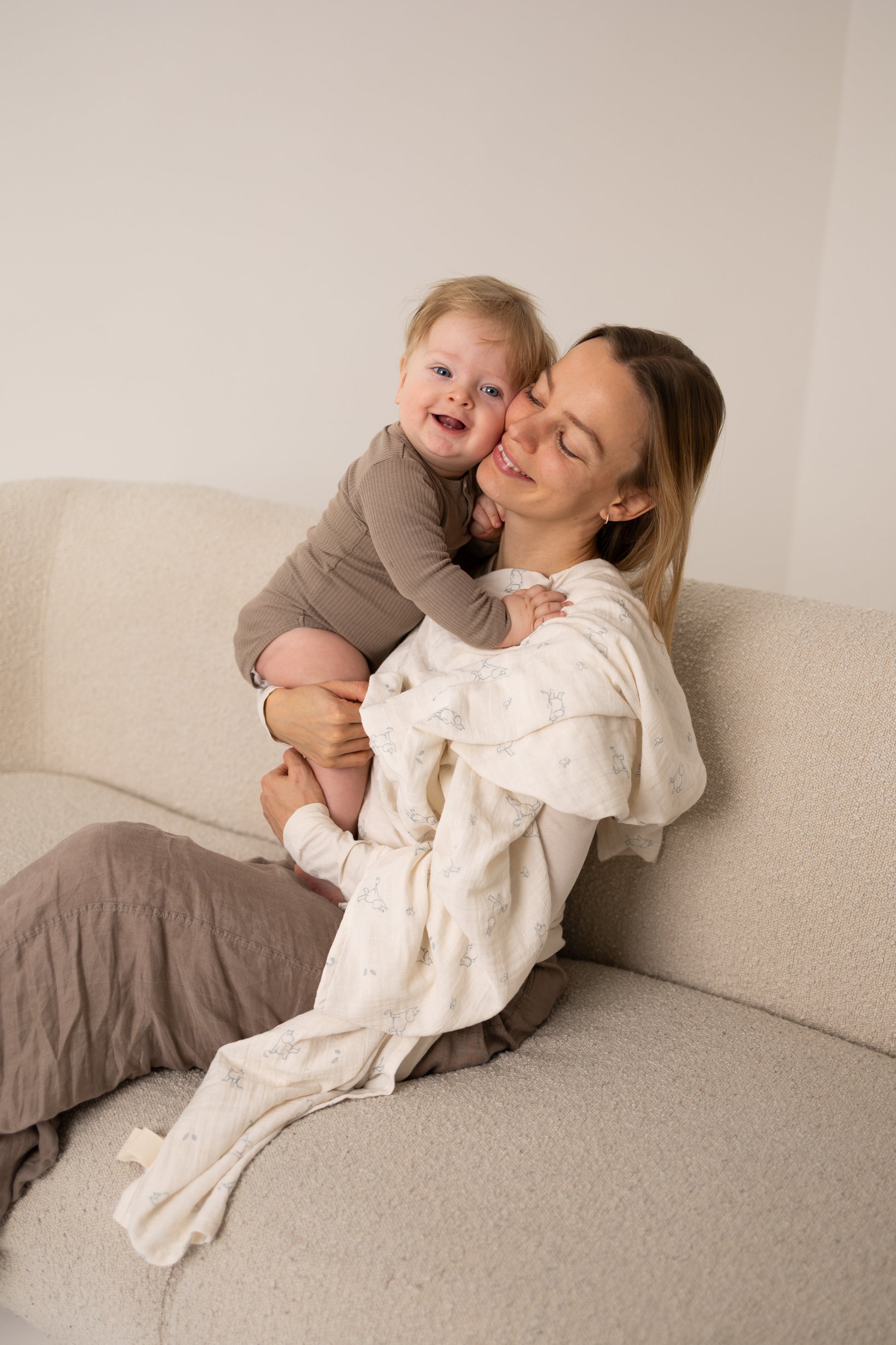 Let, skånsomt og behageligt er dette musselintæppe designet til at give komfort i hverdagen og forener praktisk funktionalitet med et tidløst design.