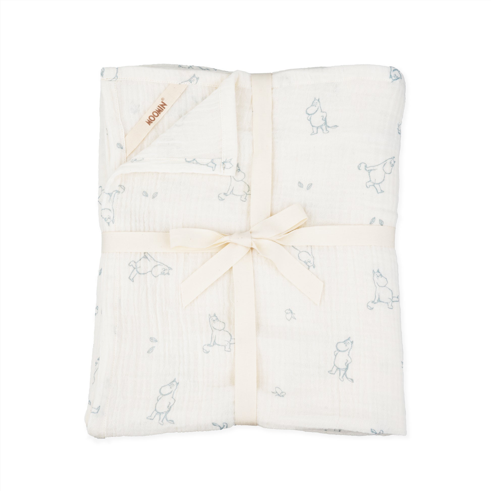 Skab rolige og hyggelige øjeblikke med dette smukke tæppe inspireret af Mumitroldenes magiske verden. Fremstillet af 100 % økologisk bomuld føles tæppet vidunderligt blødt og er ideelt til svøb, putning, amning og komfort i hverdagen.