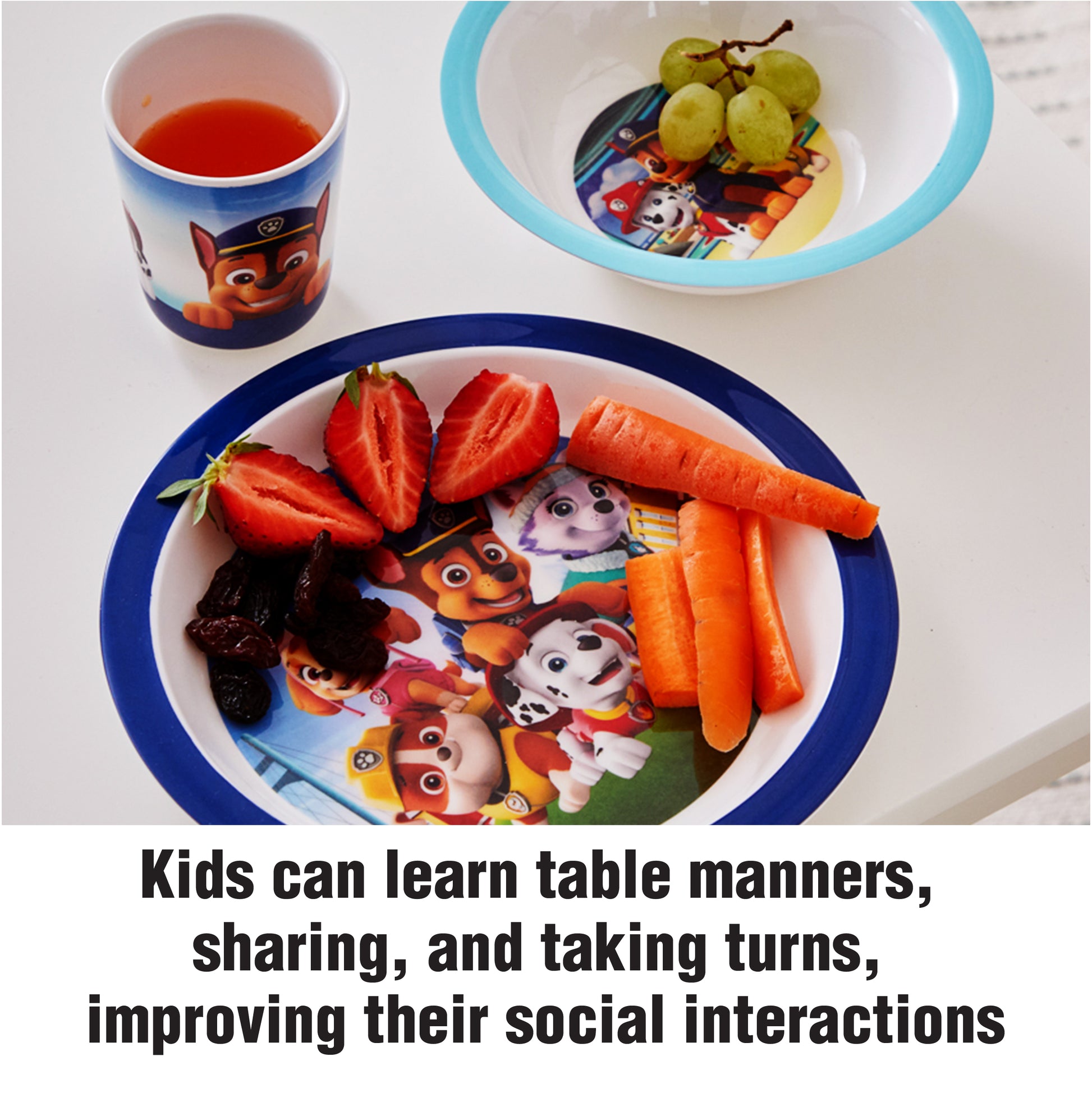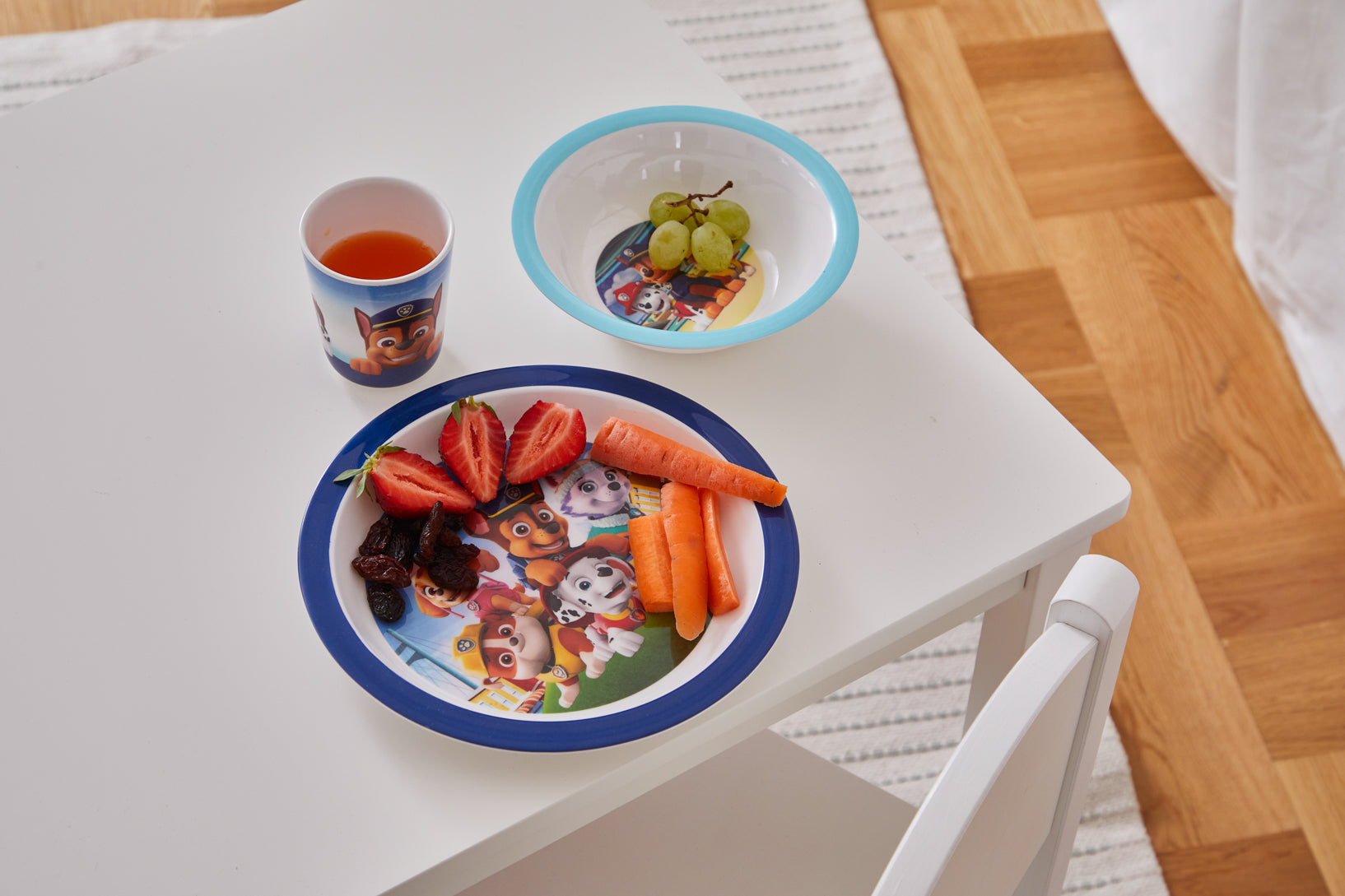 Super sødt spisebordssæt med detaljerede motiver fra Paw Patrol universet, der vil gøre ethvert måltid lidt sjovere for børnene. Dette spisebordssæt er en perfekt start, når den lille begynder at spise på egen hånd. Spisestellet er lavet af melamin (BPA-frit) som er praktisk, holdbart og er helt essentielt til hverdag, picnic og meget mere. Spisesættet giver en følelse af en flot finish og en utrolig god kvalitet. Børn vil elske at have deres helt eget yndige, dekorerede spisebord med Paw Patrol. Dette spisebordssæt er en fantastisk gaveide til fødselsdage eller jul.