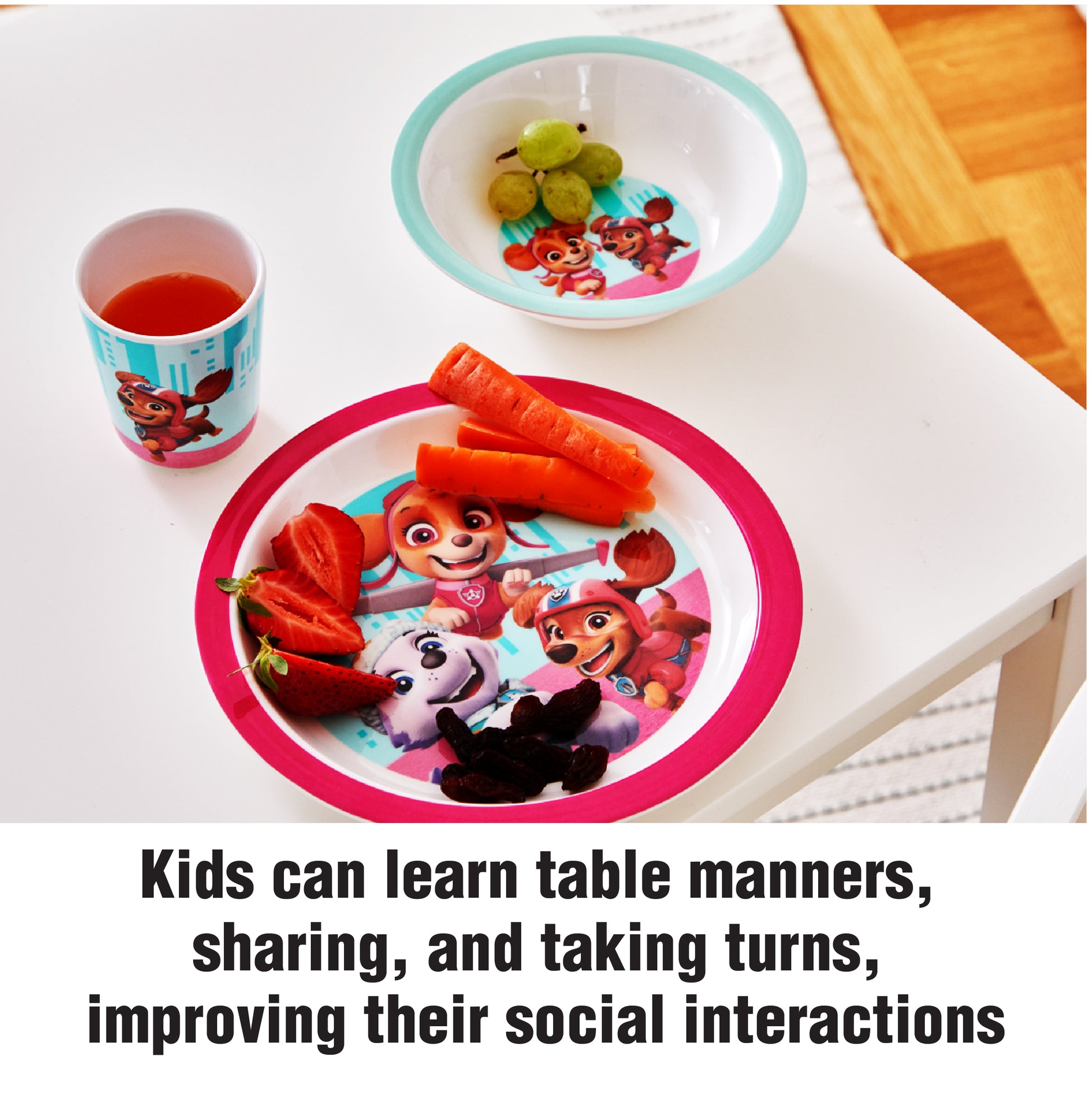 Super sødt spisebordssæt med detaljerede motiver fra Paw Patrol universet, der vil gøre ethvert måltid lidt sjovere for børnene. Dette spisebordssæt er en perfekt start, når den lille begynder at spise på egen hånd. Spisestellet er lavet af melamin (BPA-frit) som er praktisk, holdbart og er helt essentielt til hverdag, picnic og meget mere. Spisesættet giver en følelse af en flot finish og en utrolig god kvalitet. Børn vil elske at have deres helt eget yndige, dekorerede spisebord med Paw Patrol. Dette spisebordssæt er en fantastisk gaveide til fødselsdage eller jul.