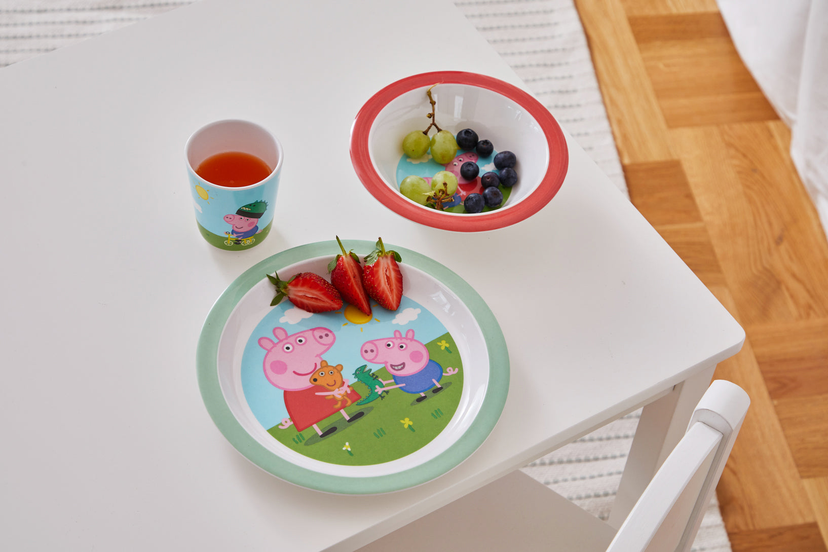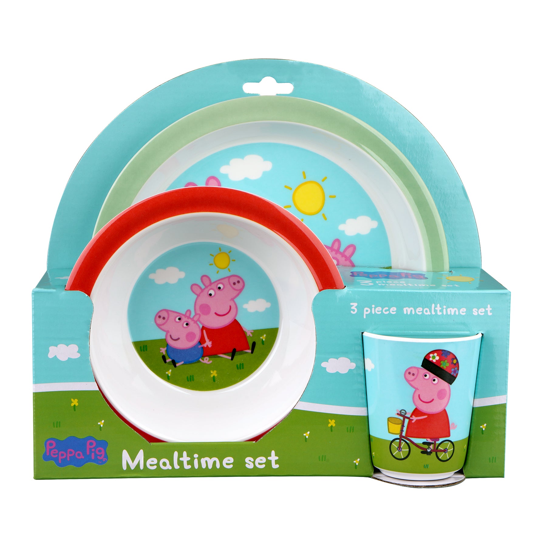 Super sødt spisesæt med detaljerede motiver fra Peppa Pig universet, der vil gøre enhver måltid sjovere. Dette spisesæt er en perfekt begyndelse, når den lille selv begynder at spise. Spisesættet giver en følelse af en fantastisk afslutning og en utrolig god kvalitet. Børn vil elske at have deres helt eget bedårende, dekorerede spisesæt med Peppa Pig.