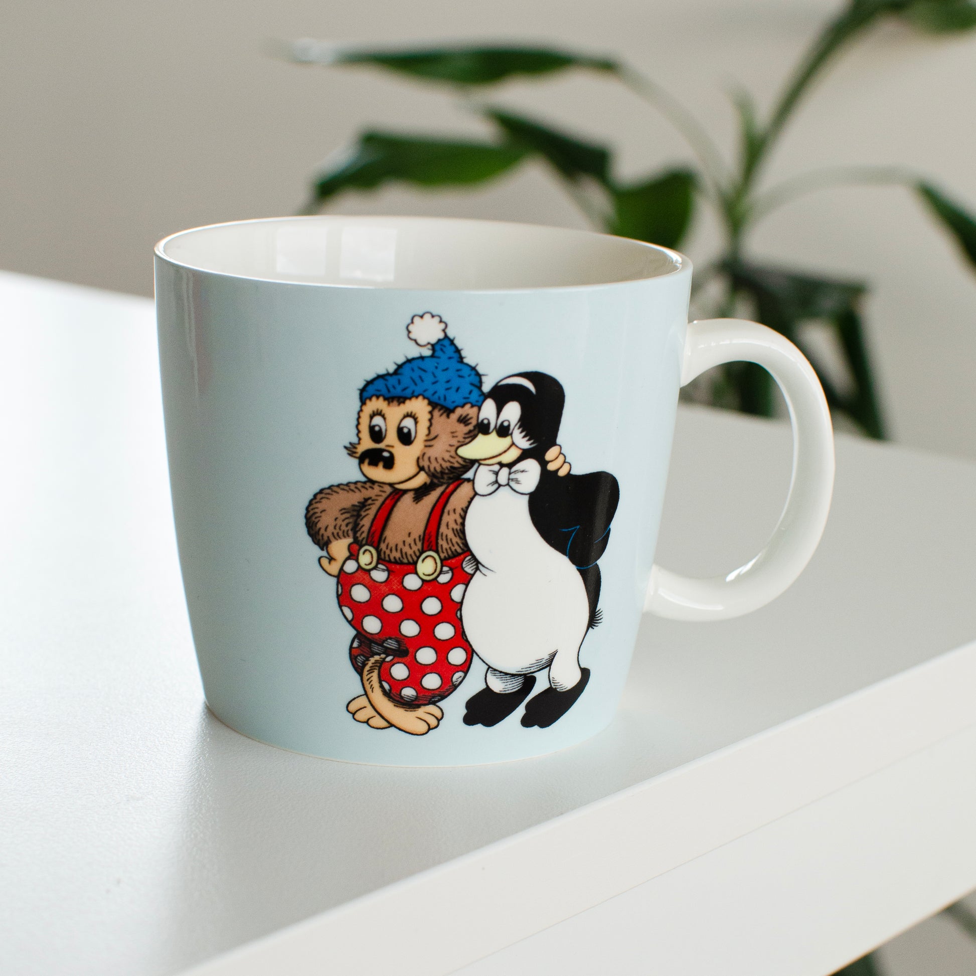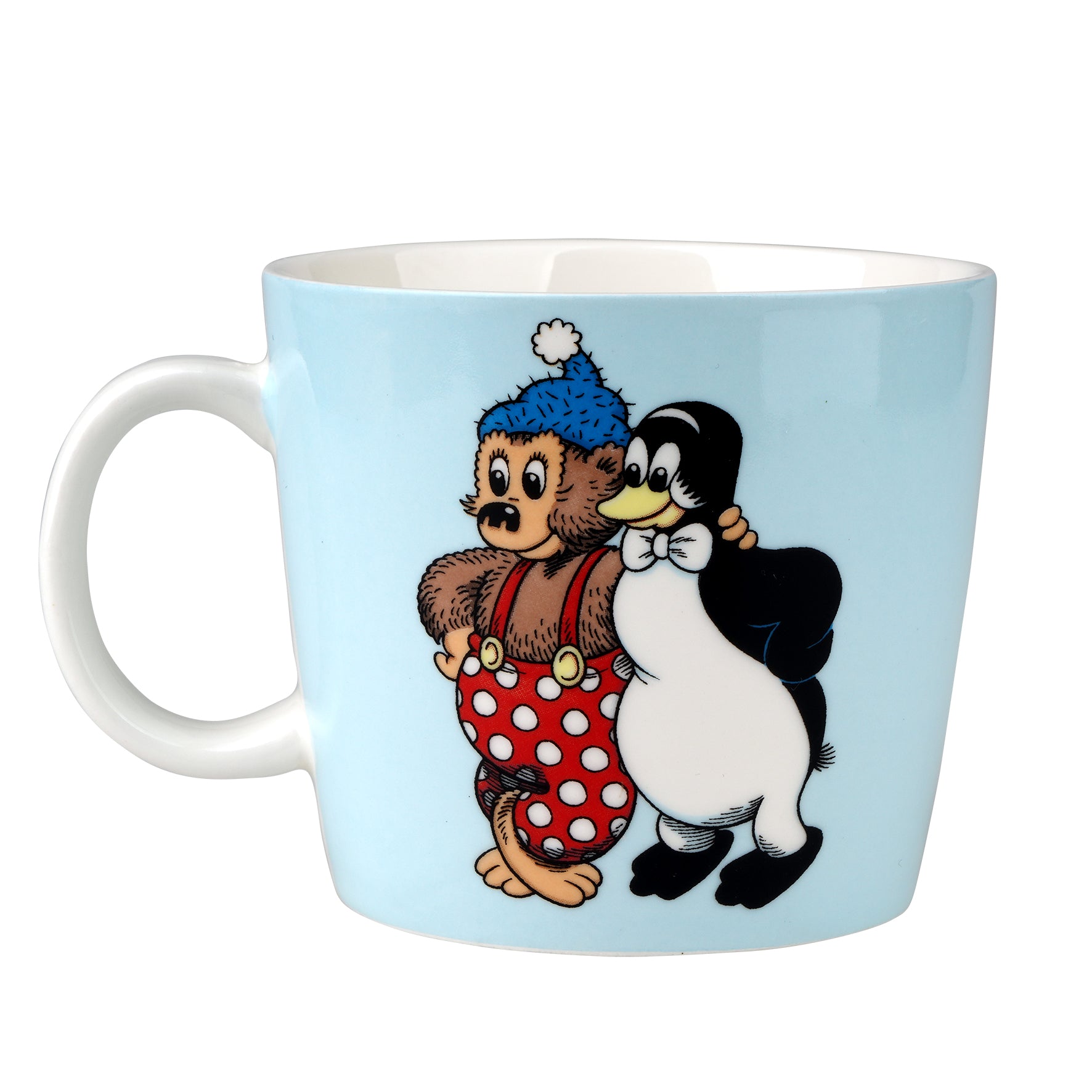 Nyd din yndlingsdrik i dette charmerende keramikkrus med Rasmus Klump og Pingo på en enkel blå baggrund. Rasmus Klumps glade smil smitter og gør hver slurk ekstra hyggelig.