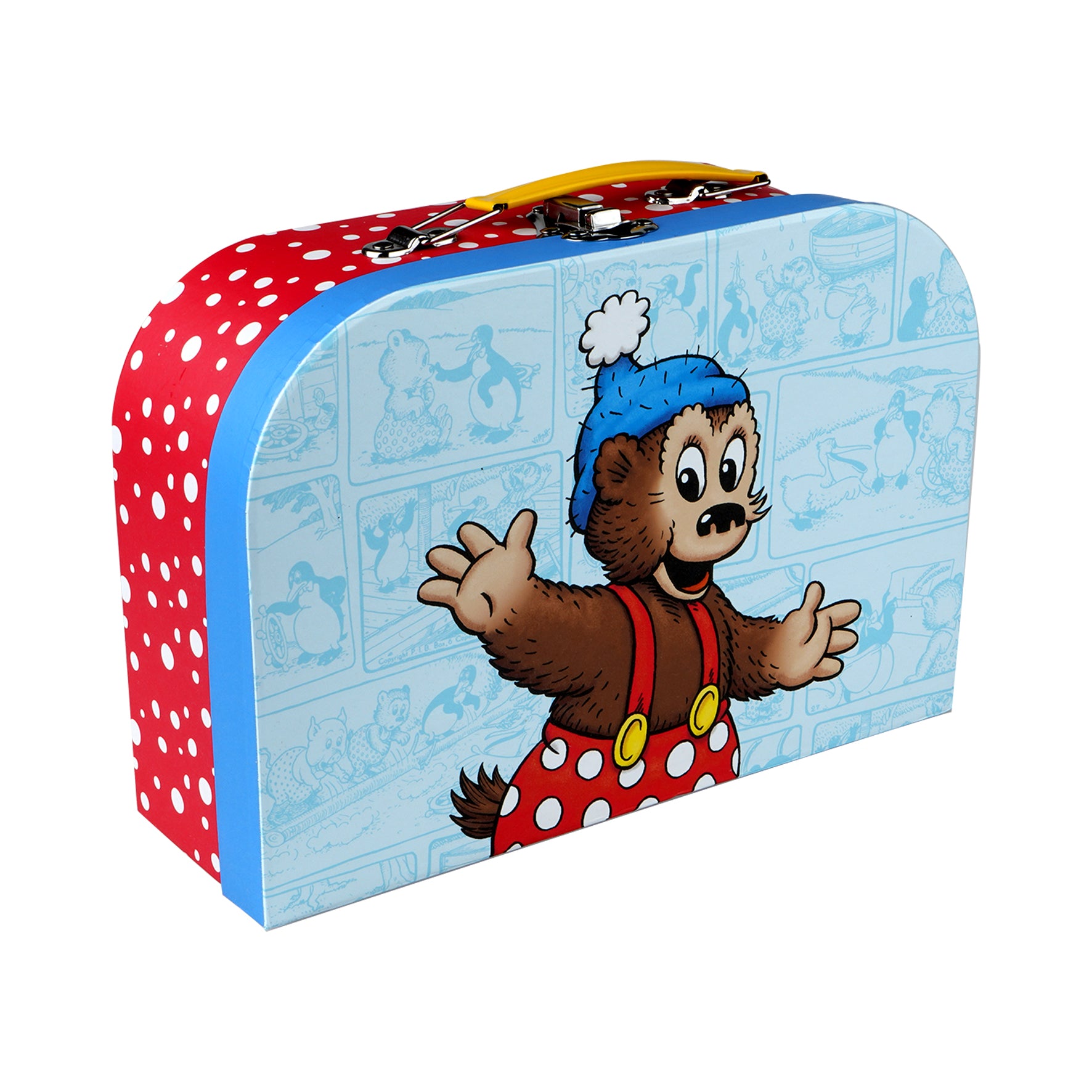 Elsker dit barn at have sine yndlingslegetøj med på farten, eller mangler I en smart opbevaringsløsning til småting? Denne søde Rasmus Klump-kuffert er det perfekte valg! Med sit charmerende design og praktiske størrelse er den ideel til opbevaring af legetøj, bøger eller andre små skatte – både derhjemme og på tur.