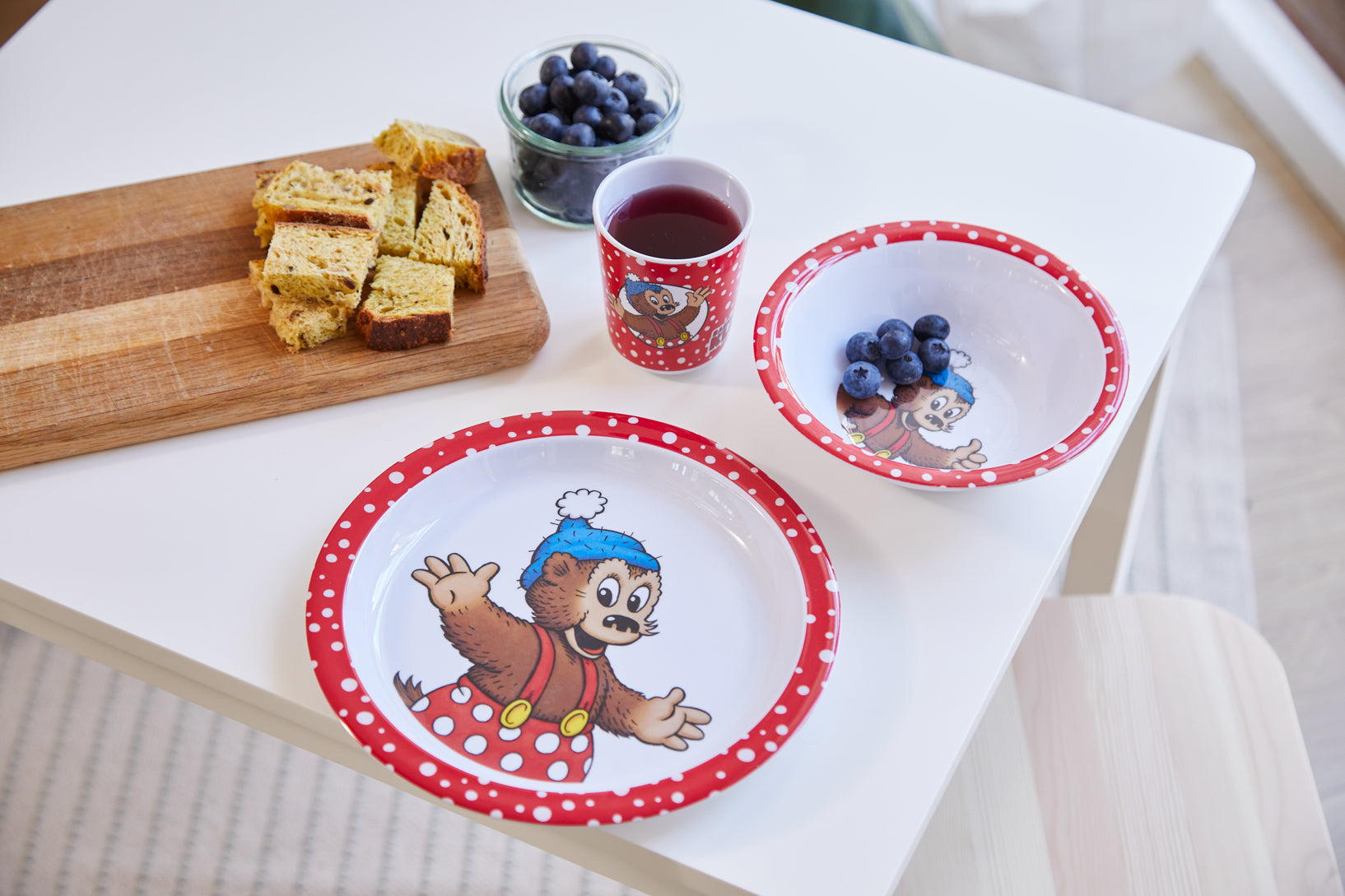 Farverigt Rasmus Klump-design, der gør drikketid ekstra hyggelig.