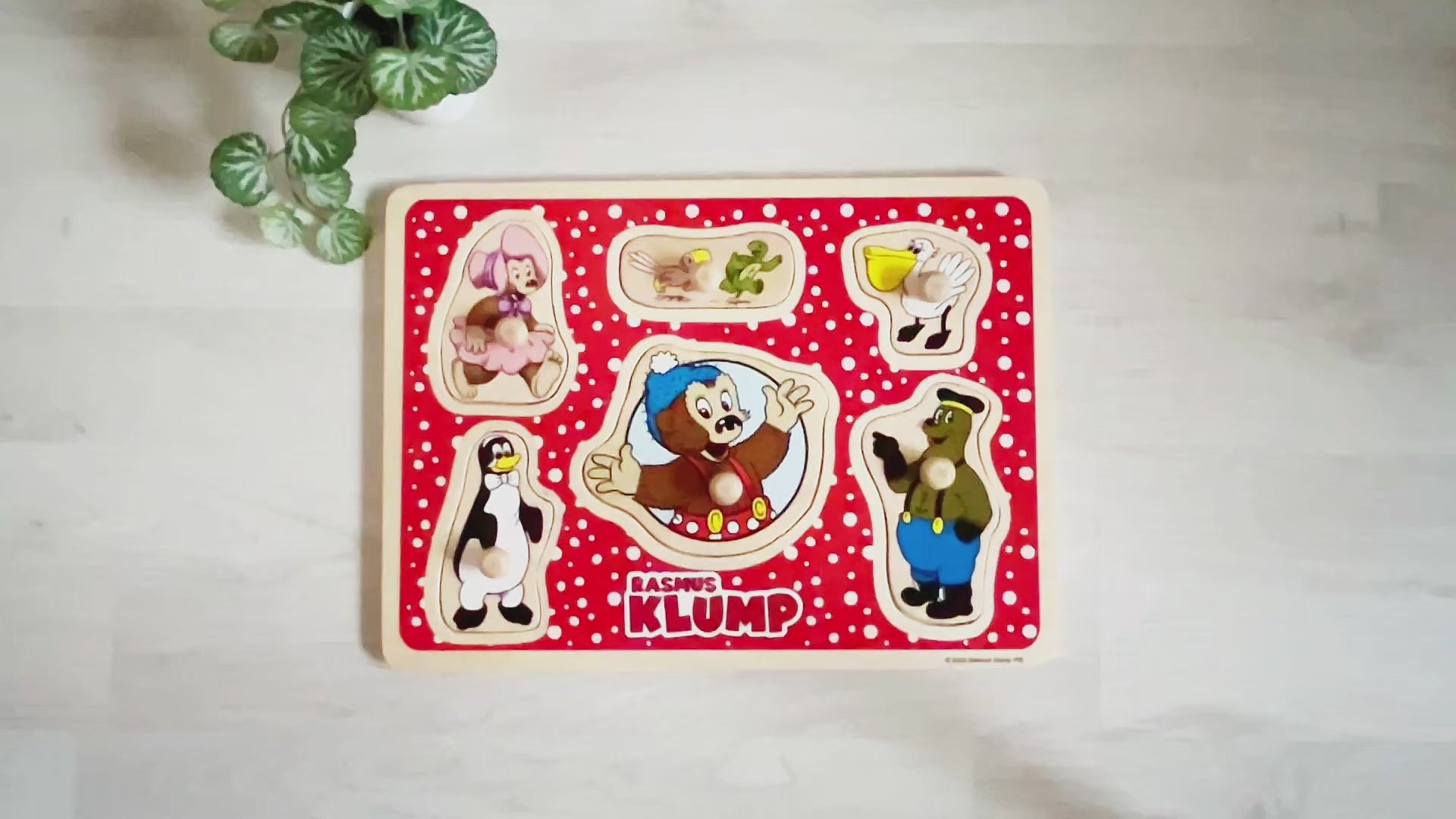 Farverigt træpuslespil med Rasmus Klump og vennerne – perfekt til små hænder