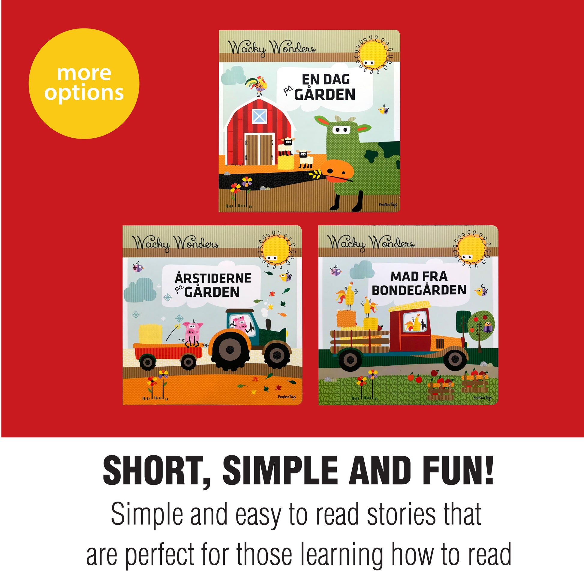 Denne bog med de sjove dyr fra Wacky Wonders verdenen er god til enhver hyggestund. Læs den lille søde historie og find de forskellige dyr og ting fra gården i de 5 opslag.