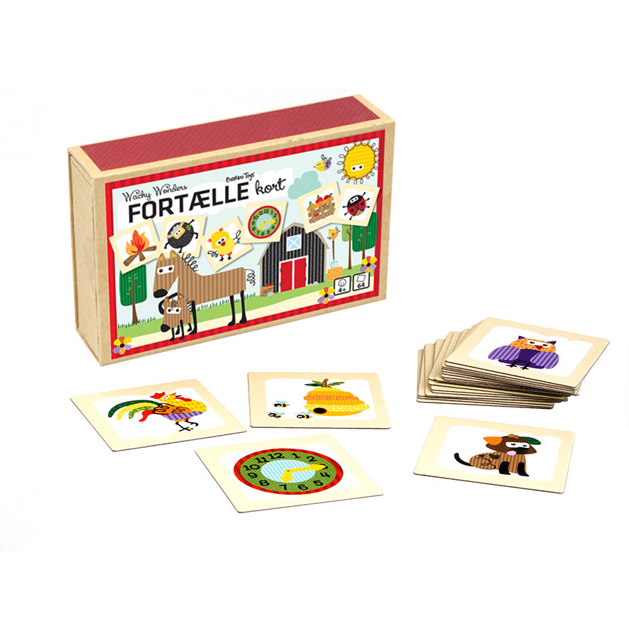 Disse kort inspirerer til kreativitet og historiefortælling, hvilket hjælper børn med at øve deres sprogfærdigheder, udvide deres ordforråd samt udvikle hukommelse og observationssans.