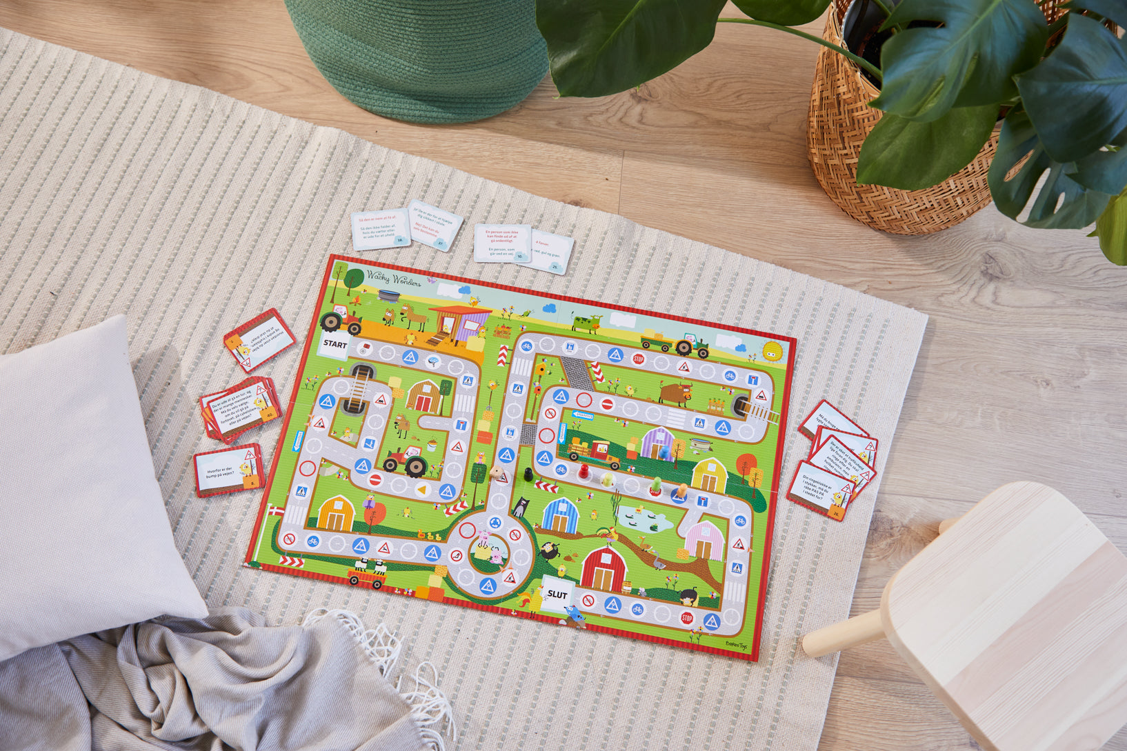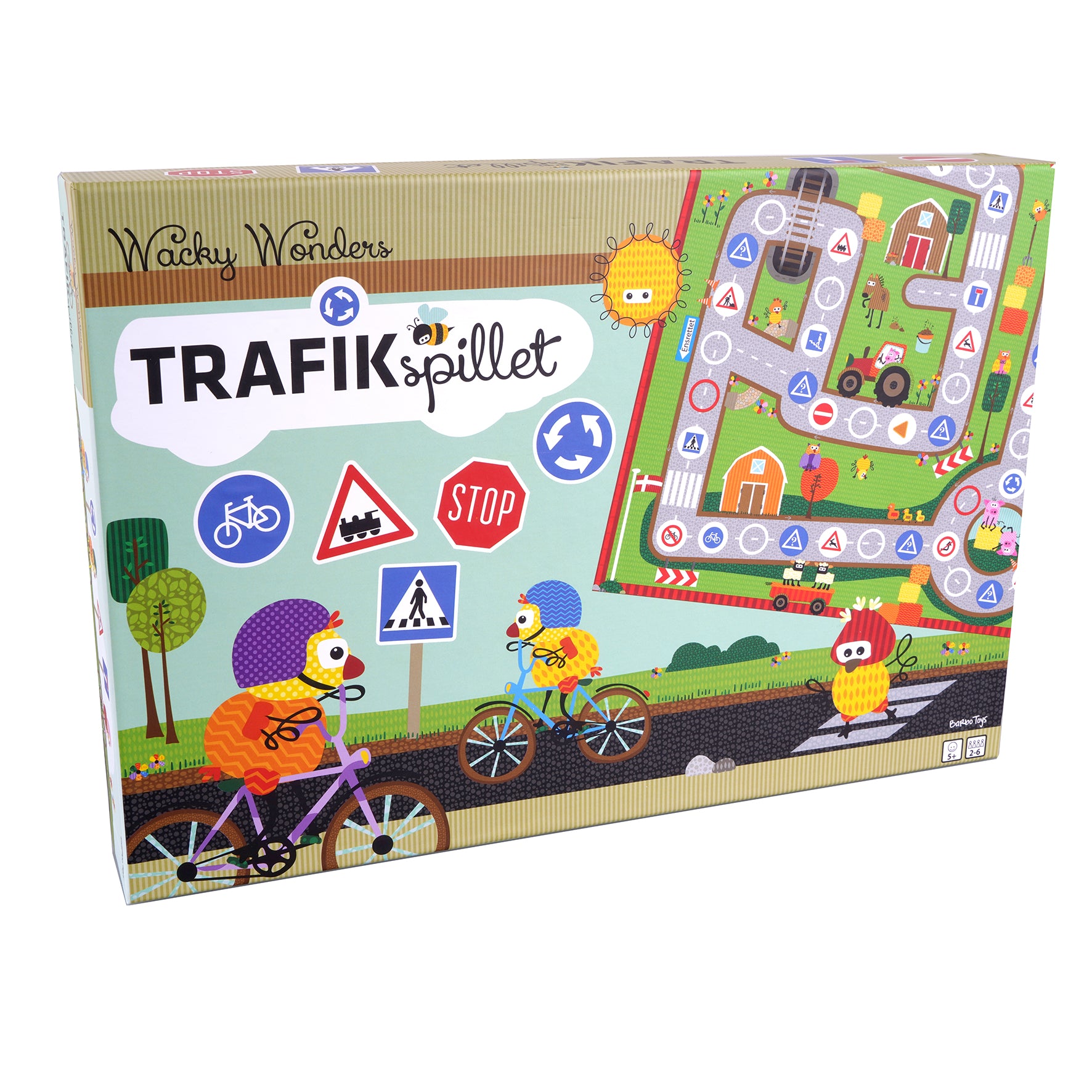 Dette sjove og lærerige brætspil samler hele familien om at lære om trafiksikkerhed sammen med de skøre dyr fra Wacky Wonders-universet. Undervejs møder spillerne vejskilte og spørgsmål, der skaber samtaler om trafikregler og sikkerhed.